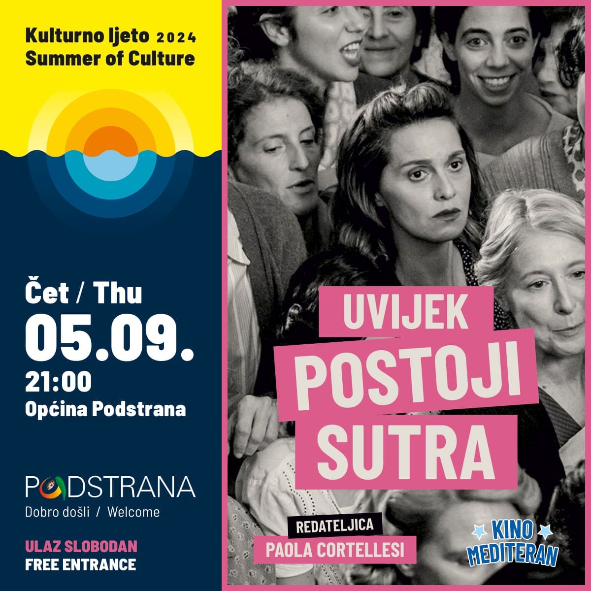 U četvrtak se u Podstrani prikazuje film Uvijek postoji sutra (C'è ancora domani) redateljice Paole Cortellesi iz 2023. godine.