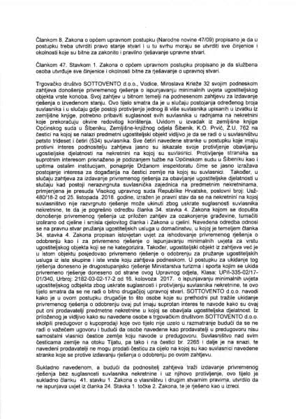 Sottovento je podnjela zahtjev u Upravni odjel za prostorno uređenje i gradnju za izdavanje Rješenja o izvedenom stanju za ozakonjenje građevine izgrađene prije 1968. na kat.čest. 2265 k.o. Prvić na dan 25.04.2022. klasa: UPI-350-05/13-02/10400. Sada tvrtka Sottovento taj objekt želi prikazati kao objekt koji je izrađen prije 1968.god., a na temelju Izvoda iz katastra Klasa 935-08/17-02/1046 od 10.11.2017. Navedeni objekat nije stara ruševina koja je obnovljena, već je novi objekt, tj. bespravno izgrađena kuhinja s roštiljem za ugostiteljski objekt tvrke Sottovento d.o.o. Na digitalnoj ortofoto snimki (DGU GEOPORTAL) iz 2011. na sadašnjoj lokaciji objekta „Nadstrešnica s roštiljem“ ne vidi se nikakav objekt, jer ga nije ni bilo na toj lokaciji zadnjih 50 - 60 god. Na ortofotosnimki iz 2019 vidi se objekt, jer je u međuvremenu sagrađen. I u ovom predmetu suvlasnici su dali prigovor.