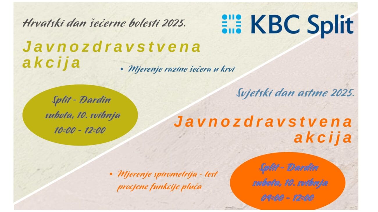 Povodom Svjetskog dana astme i Hrvatskog dana šećerne bolesti Klinički bolnički centar Split organizira dvije javnozdravstvene akcije koje će se održati u Đardinu u subotu, 10. svibnja 2025.