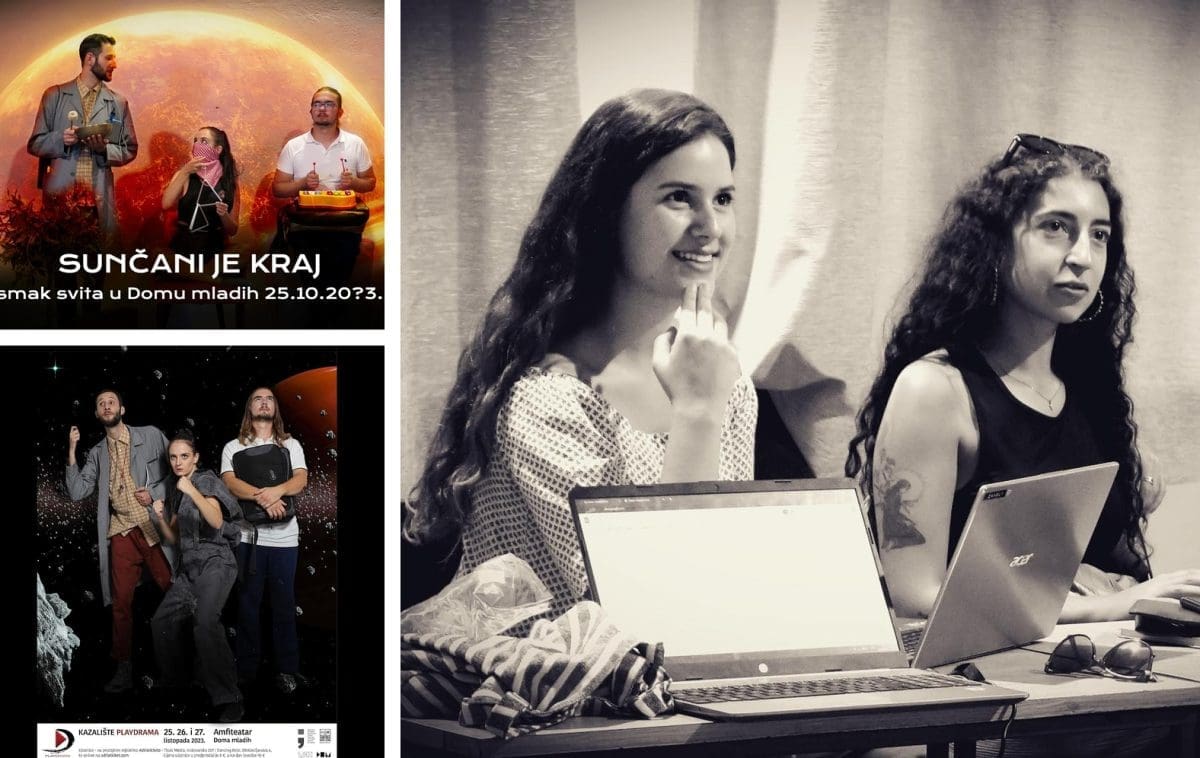 KRISTINA: Pitanje smaka svijeta nas kao ljude oduvijek istovremeno i plaši i fascinira. U današnjem kontekstu gdje nažalost svjedočimo novim uznemirujućim događajima: ratovima, epidemijama, ekološkim katastrofama, stvarno nije teško povjerovati kako nam se svima zaista bliži kraj. Kod pretraživanja bespuća Youtubea, primijetila sam da mi se puno prikazuje sadržaj vezan upravo za tu temu. Različiti videozapisi s kojekakvim teorijama o smaku svijeta, s pregršt gledatelja koji se u komentarima „nadmudruju” kako je upravo njihova teorija ona najtočnija… Potreba za rješenjem moguće apokalipse motivirala me da upravo ta tema bude polazište za stvaranje nove predstave.