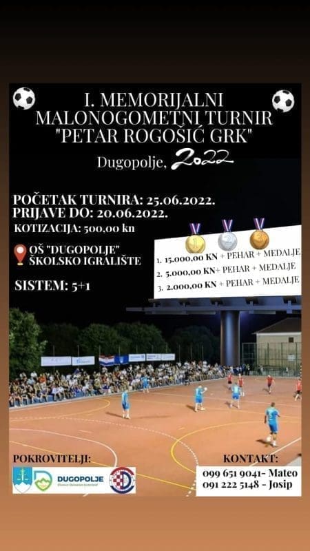 "Ove godine turnir je promijenio naziv u 1.memorijalni malonogometni turnir Petar Rogošić Grk, u čast nedavno preminulog sumještanina koji je i sam bio sudionik te veliki ljubitelj malog nogometa.
