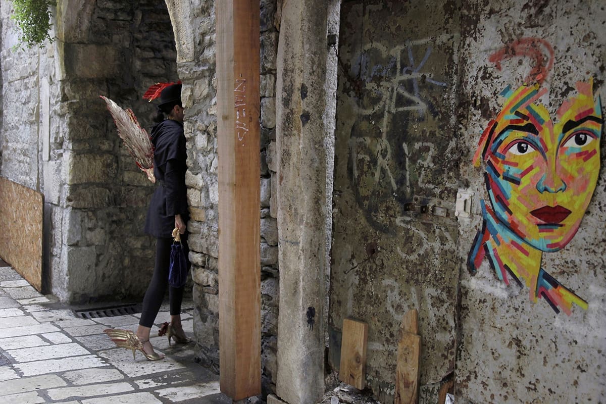 Oživotvorene slike boga Merkura i kretske princeze, prenesene su na nove lokacije, Dioklecijanovu palaču koja ima strukturu labirinta, i Sustipan – dislocirano, antičko groblje, danas park s malom crkvom i neo-klasicističkim trijemom. Vizualni materijal je kombinacija