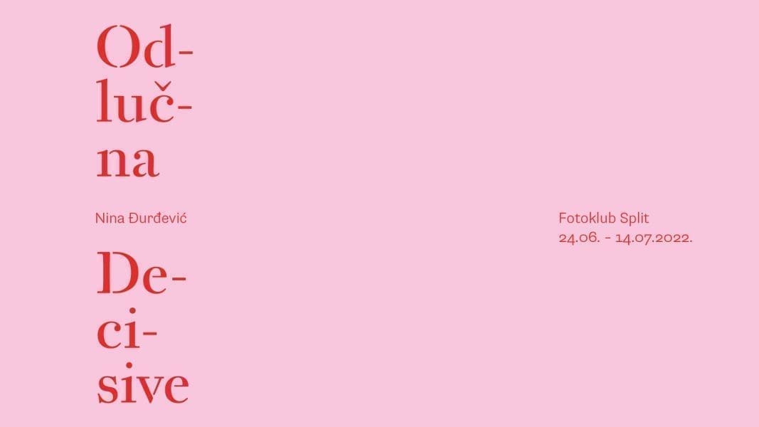 U petak, 24. lipnja u 19:30 sati u Galeriji fotografije Fotokluba Split otvorit će se sjajna, dirljiva i intimna izložba ''Odlučna'', vizualne umjetnice Nine Đurđević.