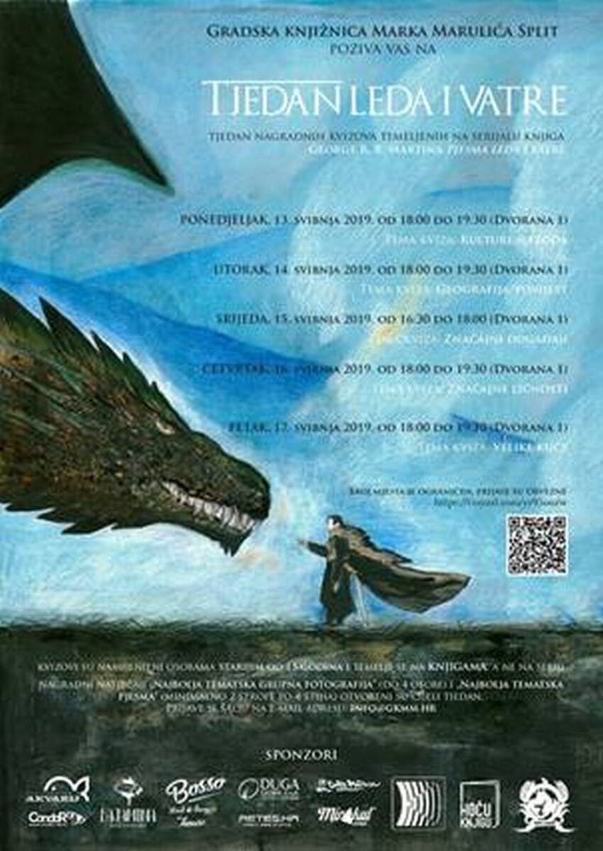 Tjedan leda i vatre petodnevna je manifestacija koju organiziraju Nikolina Kusić i Maja Stazić, diplomirane knjižničarke Gradske knjižnice Marka Marulića Split, ujedno i voditeljice dugogodišnje manifestacije Tjedan Harryja Pottera.