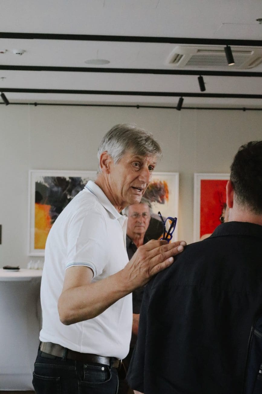 „U našem krasnom hotelu danas otvaramo 24. izložbu po redu. S ponosom možemo reći da smo dosad ugostili velikane poput Vidovića, Veže, Kaštelančića, Rendića, Kožarića, Pervana, Nobila, Govca, Mihanovića, Lupina, Modisa i mnogih drugih, kao i brojne mlade, još neafirmirane umjetnike. Moj osobni cilj kao voditelja ove galerije je i njihova afirmacija. No posebno mi je zadovoljstvo što danas, nakon gotovo deset godina, ponovno donosimo u Split radove Ede Murtića, jednog od najvećih hrvatskih umjetnika,“ izjavio je Damir Vrdoljak, voditelj galerije hotela Ambasador.