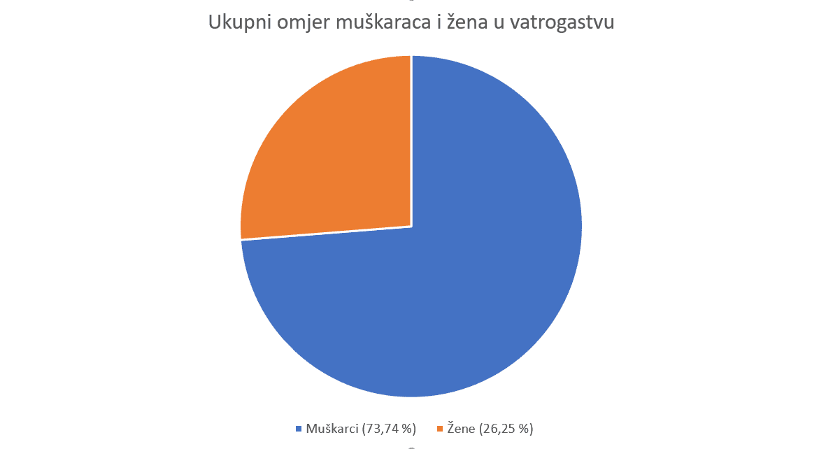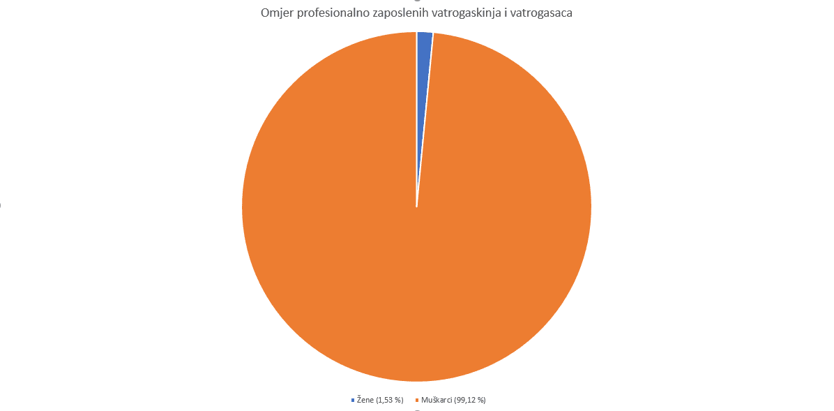 Žene su i dalje jako malo zastupljene u profesionalnom vatrogastvu pa prema aktualnim podatcima njihova zastupljenost je tek 1.26% u javnim vatrogasnim postrojbama, a profesionalno zaposlenih vatrogaskinja u dobrovoljnim vatrogasnim društvima tek je neznatni udio od 0.27%.