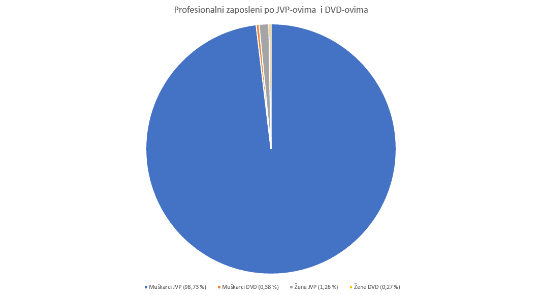 Ukupno je, zajedno u javnim i dobrovoljnim postrojbama, zaposleno 1.53% profesionalnih vatrogaskinja.