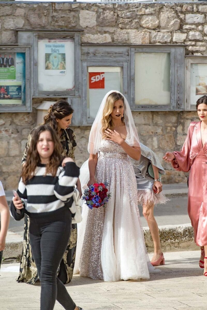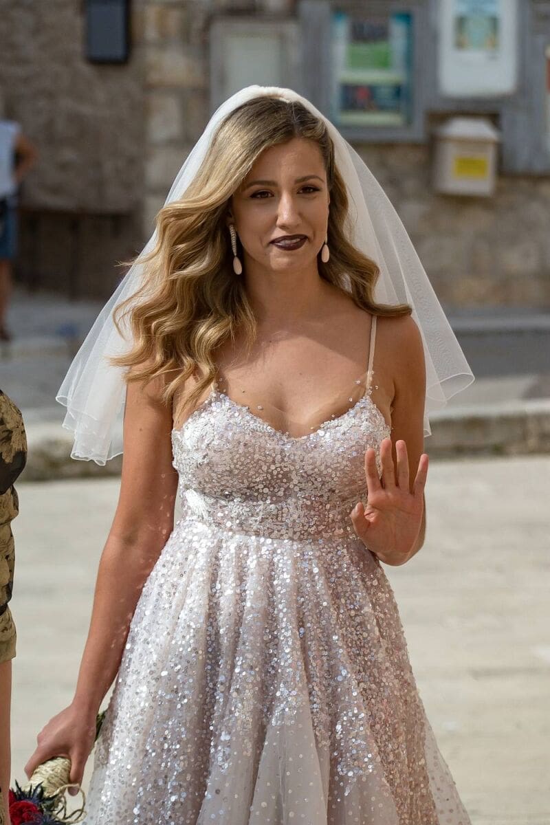 U hvarskoj katedrali Sv. Stjepana svoje sudbonosno "DA" rekla je danas mlada liječnica Bruna Sanader (30), mlađa kći bivšeg premijera Ive Sanadera (65). Brunu do oltara nije otpratio otac, koji se nalazi u zagrebačkom Remetincu, a u katedralu je ušla u pratnji svoje sestre Petre.