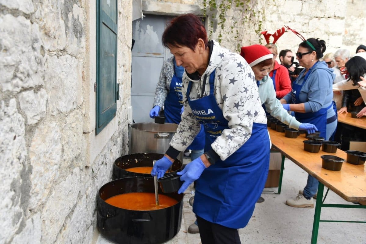 Oko tisuću porcija podijeljeno je danas na staroseljskom Brcu, a u kuhanju bakalara sudjelovali su poznati kaštelanski chefovi.Soniboj Grgin i Nikola Tomić, a ove godine pridružio im se kolega Ryan Finucane.