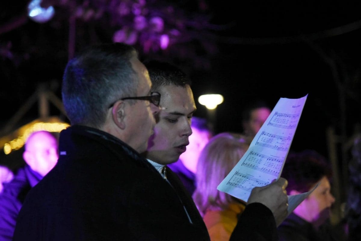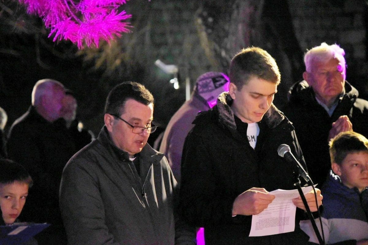 Službu riječi i blagoslov predvodio je župnik župe sv. Petra Apostola don Božo Plazibat. Ceremoniju paljenja svijeće uljepšali su župni zbor Karmel iz Kaštel Kambelovca i župni zbor sv. Petra iz Kaštel Novog izvodeći prigodne božićne pjesme.