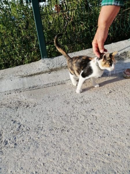 Za pretpostaviti je da je odlutala iz nečijeg doma. Na sebi ima ogrlicu za buhe i crvenu ogrlicu sa zvončićem.