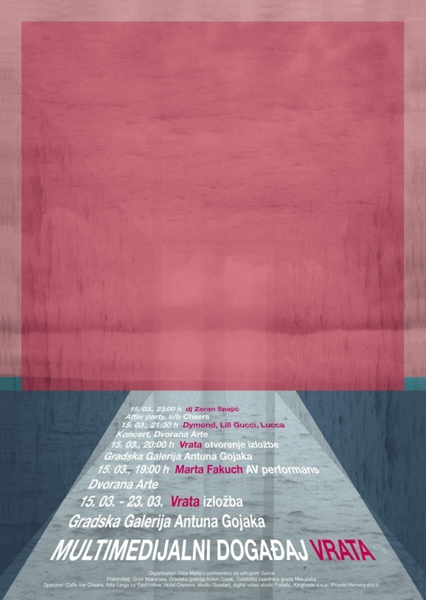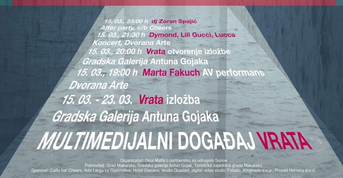 U Makarskoj 15. ožujka u dvorani Arte s početkom u 19:00 h i Gradskoj galeriji Antun Gojak s početkom u 20:00 h, Ulica don Mihovila Pavlinovića 1., otvorenje je multimedijalnog događaja VRATA u čast svestrane makarske umjetnice Zlatice Rice, u organizaciji Dice Malta.