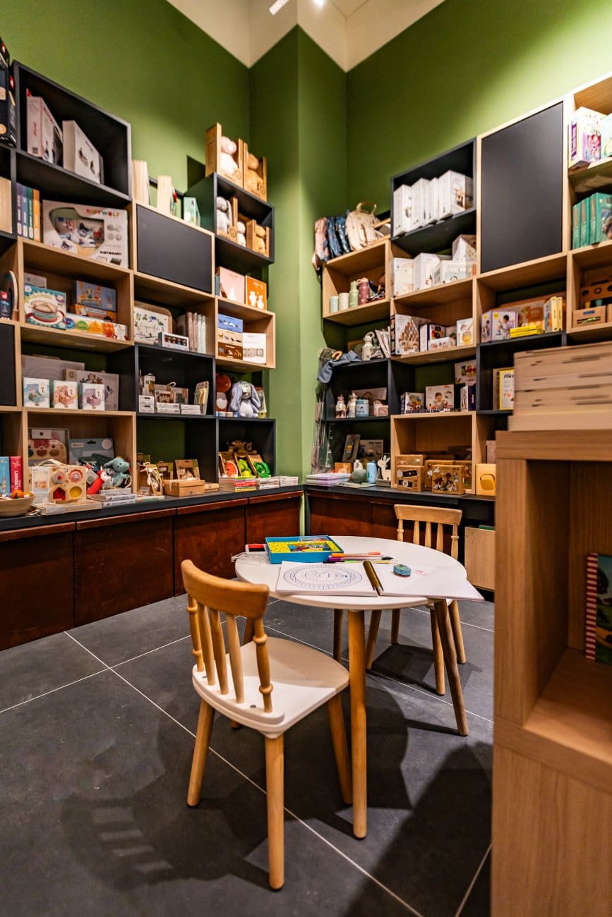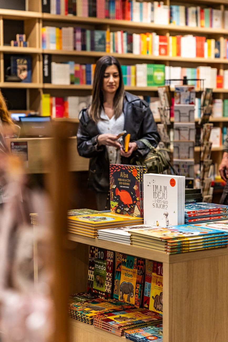Pažnju privlači i dječji odjel osmišljen kao mali kutak za listanje i igru, s velikim izborom slikovnica i eko-igračaka. Kultni francuski brendovi za djecu Djeco, Janod, Le Toy Van i Žirafa Sophie kao i nizozemski Fresk, samo su neki od razloga zbog kojih ćete u knjižari vjerojatno ostati duže nego ste planirali.