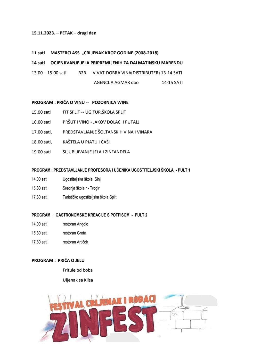 Drugi dan manifestacije rezerviran je za Dalmatinsku marendu i Priče o vinu. Ulaz na sva događanja je besplatan.