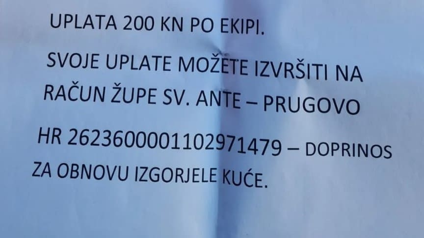 Prijatelji obitelji odlučili su organizirati turnir u balotama i sav prihod dati obitelji. Turnir se igra na Š.R.C. Dražen Šamadan - Koprivno. Uplata po ekipi iznosi 200 kuna, a uplate se izvršavaju na račun Župe sv. Ante - Prugovo.