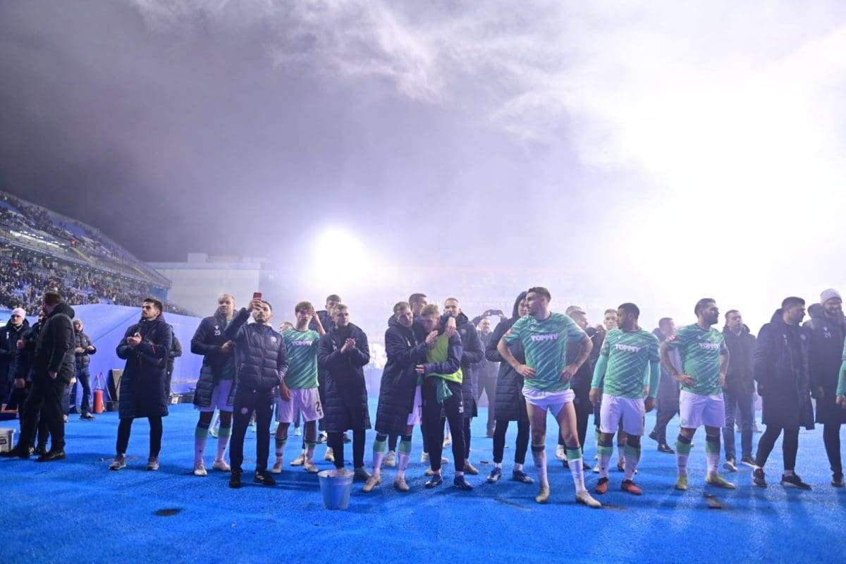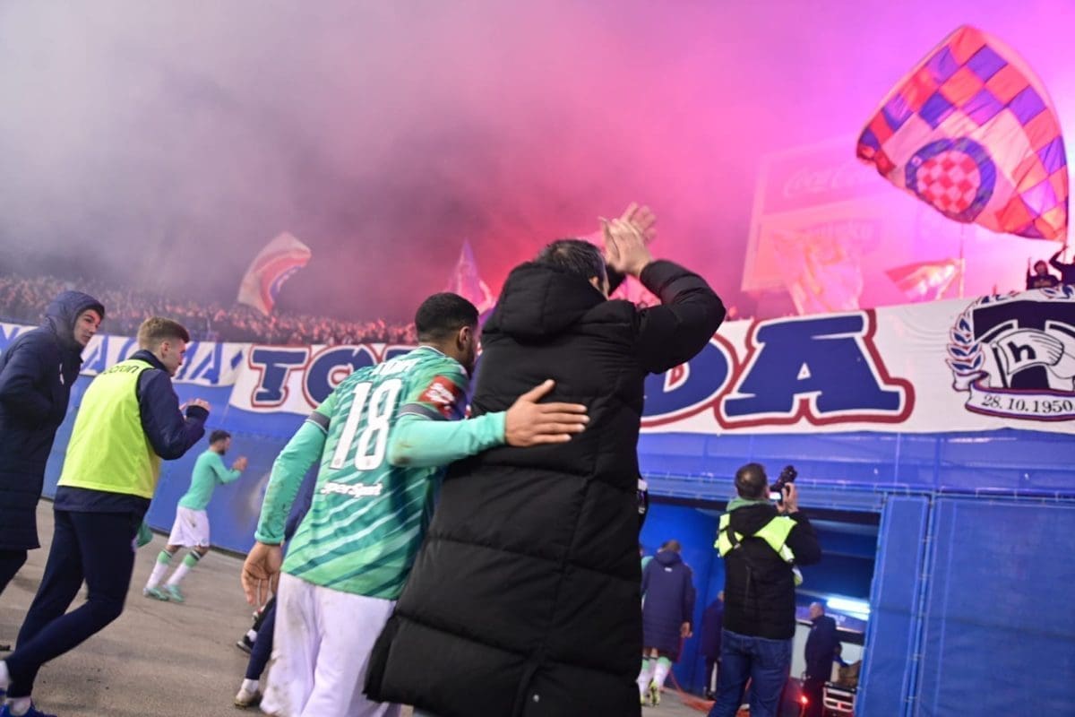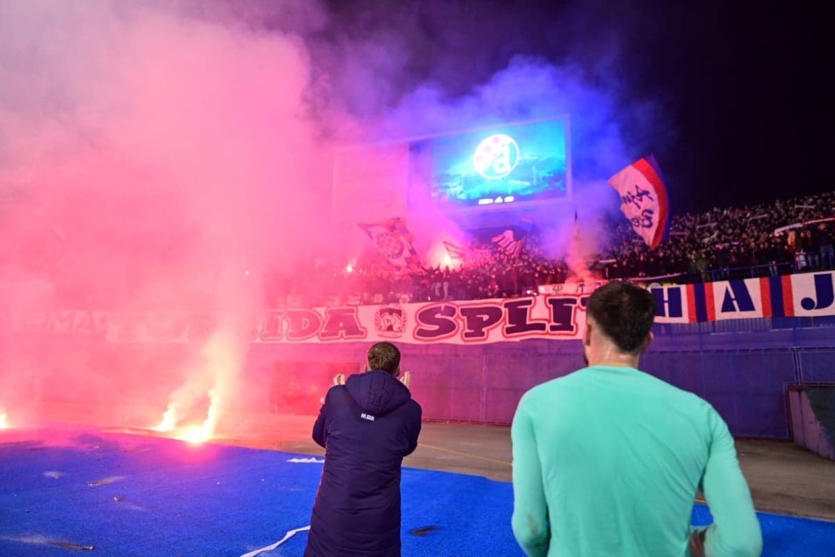 Pri završetku utakmice, igrače Hajduka Torcida je ispratila slavljem, te se sve crvenilo i dimilo od bakljade, a tribinama se naravno moglo čuti: "Zauvik ćeš ostat nebo iznad mene, s pituron bilon proša si kroz vene. Tu u mome srcu Hajduk je lipota, zauvik ćeš ostat ljubav mog života..."