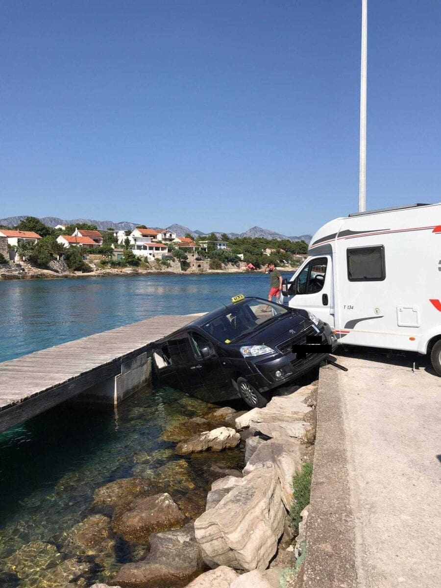 "Taksi vozilo je stajalo parkirano uz one stijene na kojima je na kraju završilo. Vozaču austrijskog kampera je pozlilo te se, valjda ošamućen, zaletio u taksi umjesto da je ušao na trajekt.