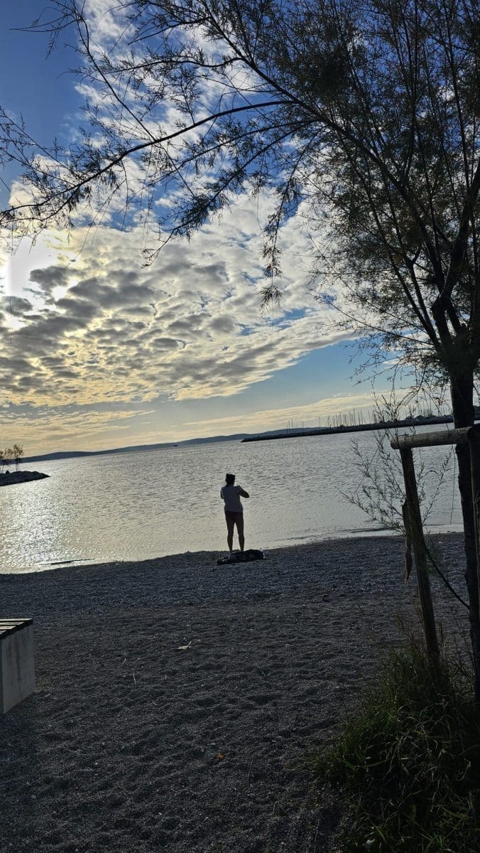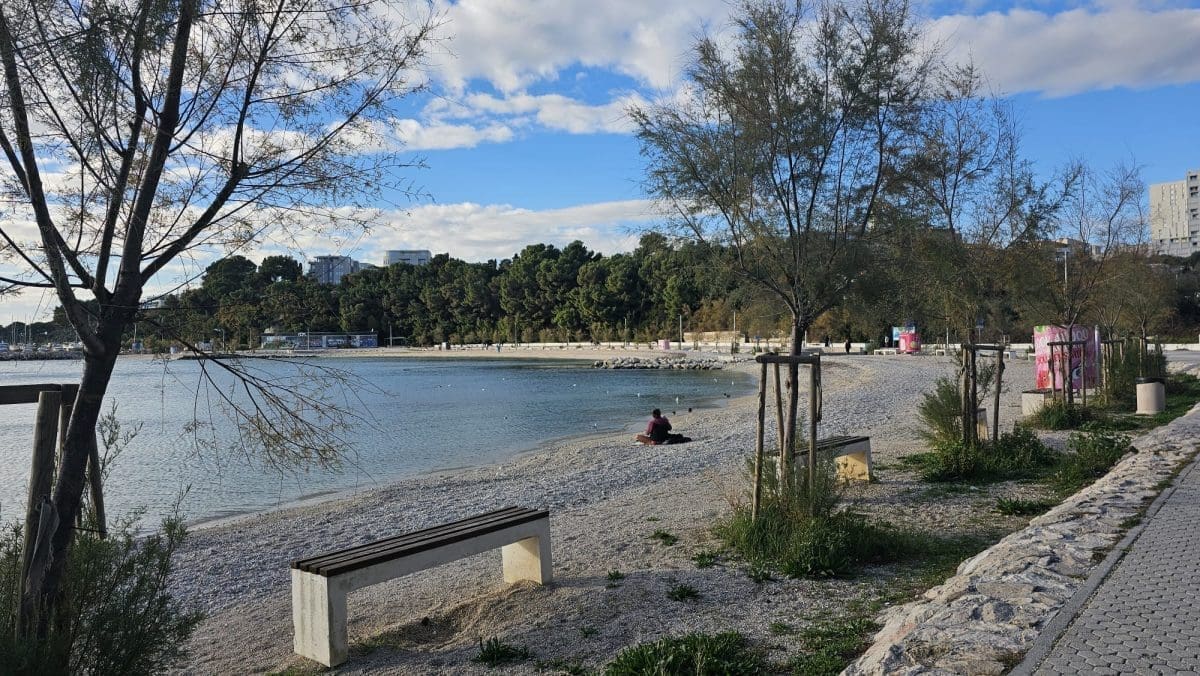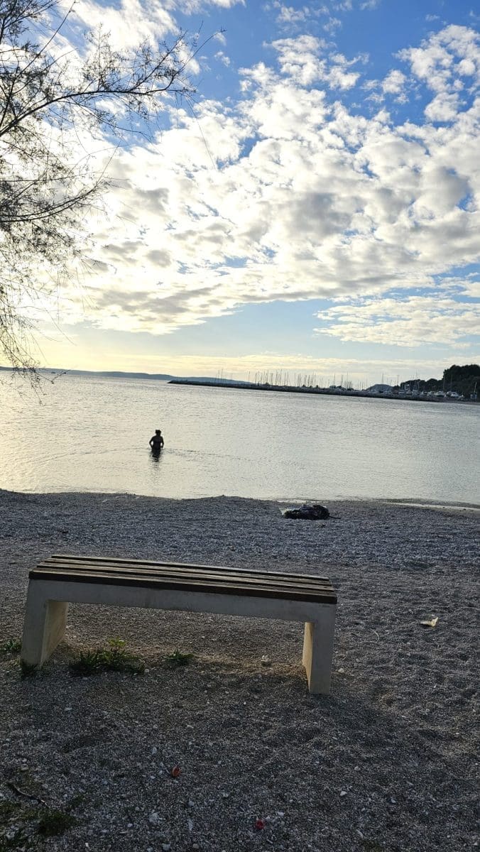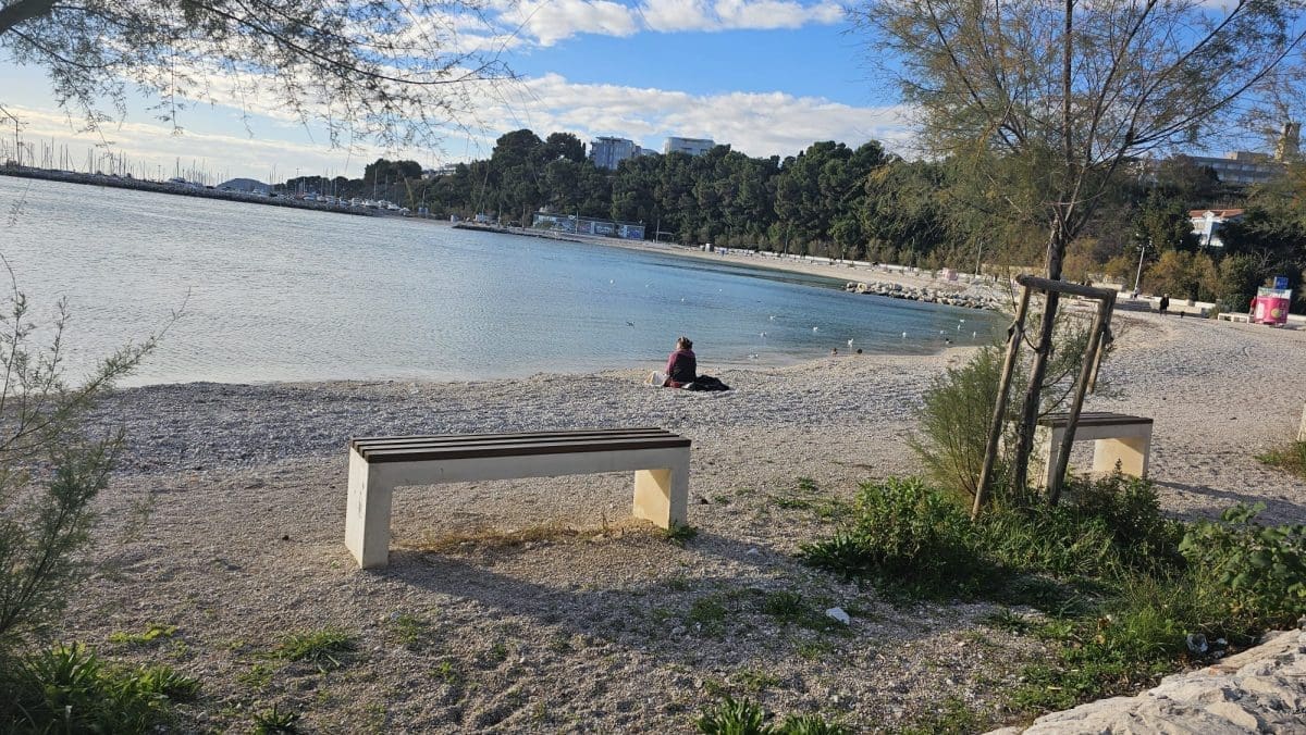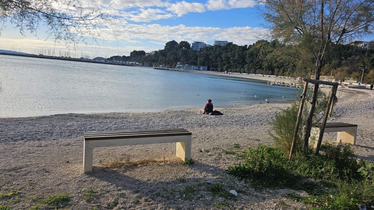 Tako je jedna žena danas uživala na plaži Trstenik. I za razliku od ljetnih dana kada se jedva može pronaći slobodno mjesto na plaži, danas nije bilo takvih problema. Mogla je slobodno uživati u morskim radostima.