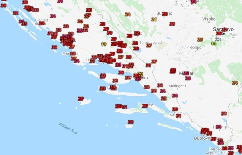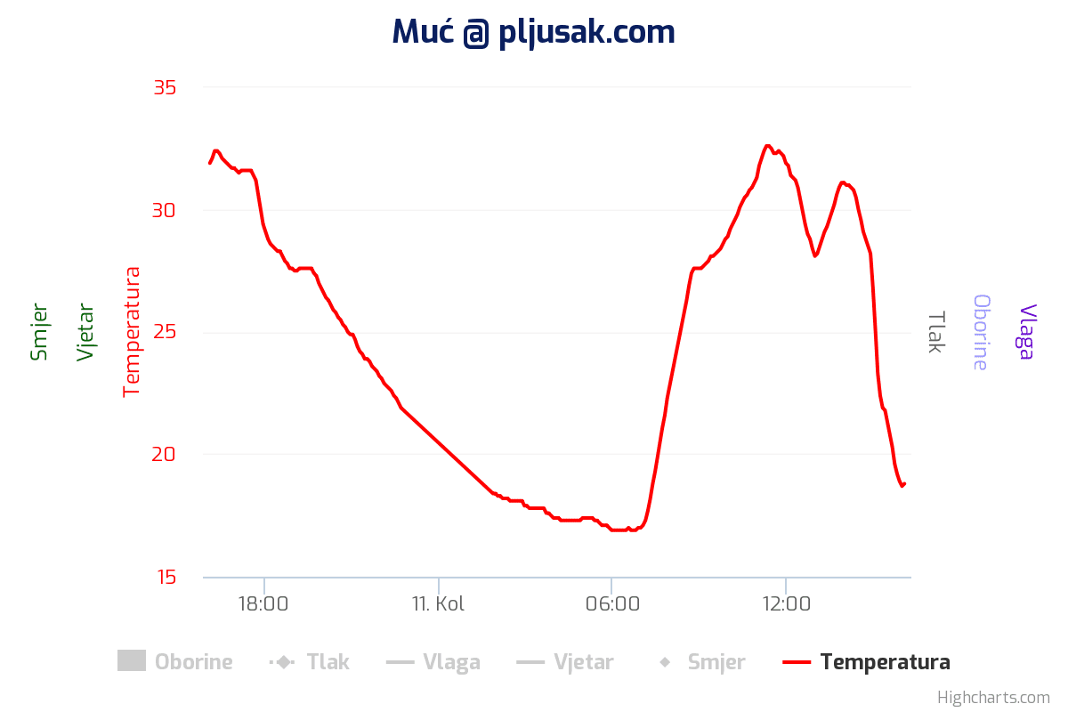 Između 15 i 16 sati nevrijeme je zahvatilo Muć u kojem je u kratko vrijeme palo 12 litara kiše po kvadratnom metru. Zanimljiv je podatak da je temperatura zraka u Muću pala s 33°C na samo 18,6°C za vrijeme nevremena.