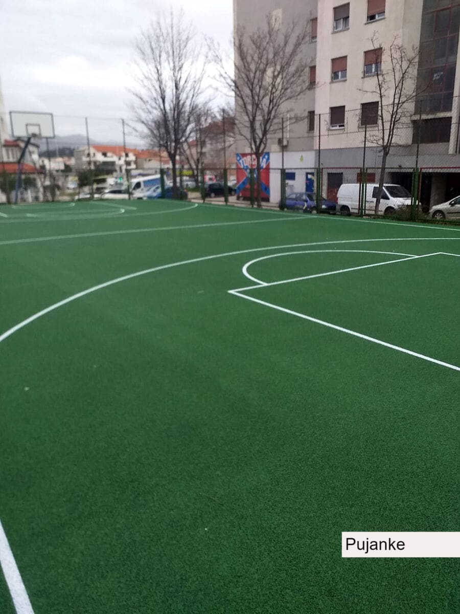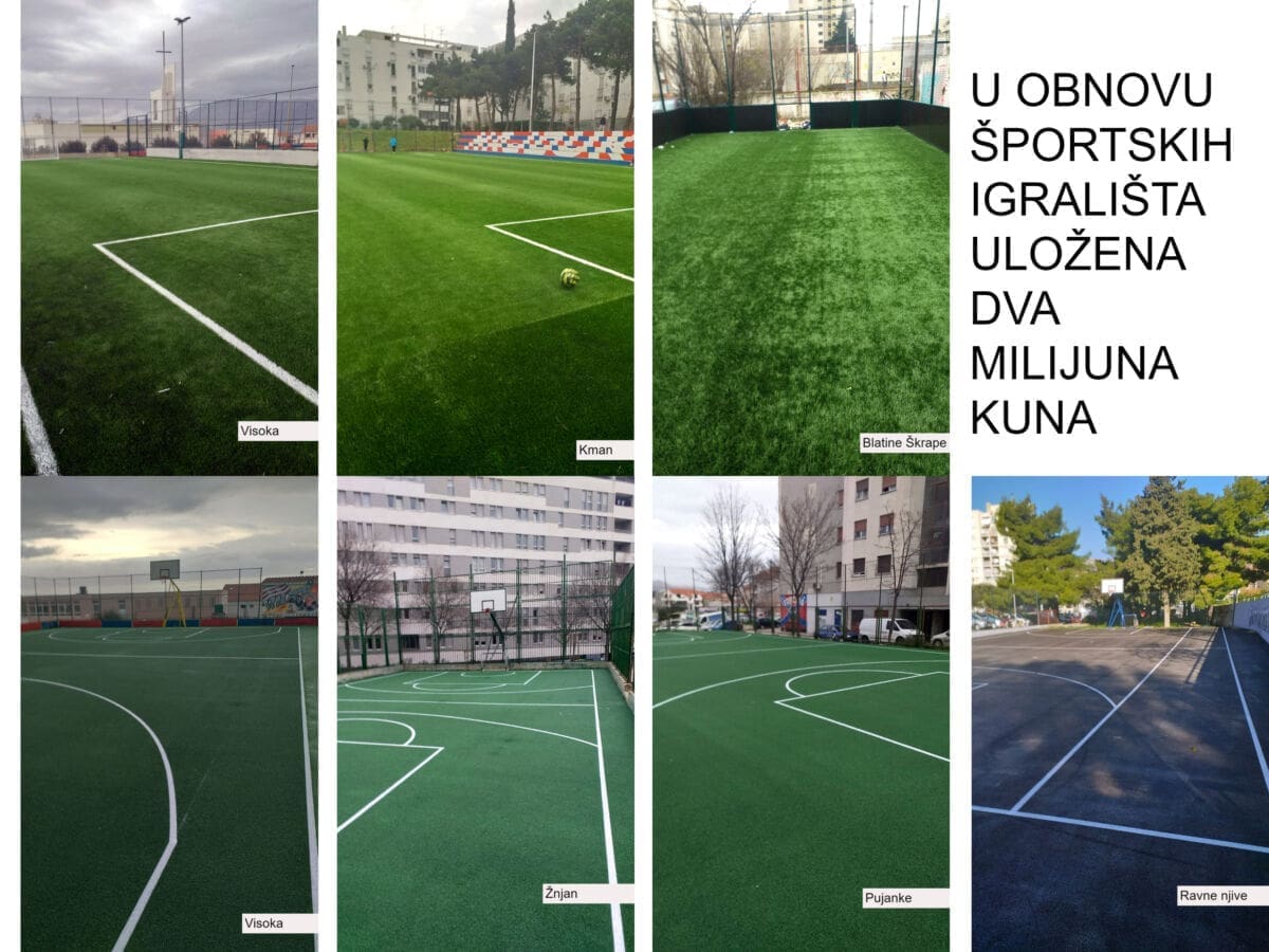 Nadalje, na radost rekreativaca i djece, Športsko-rekreacijski centar Blatine-Škrape dobio je malonogometni teren – cageball vrijedan 75 tisuća kuna, a elastičnu športsku podlogu Grad Split je postavio na košarkaškim igralištima na Pujankama, Visokoj i na Žnjanu, u vrijednosti 160 tisuća kuna. Na igralištu pri Gradskom kotaru Ravne njive ugrađena je asfaltna podloga, vrijedna 55 tisuća kuna.