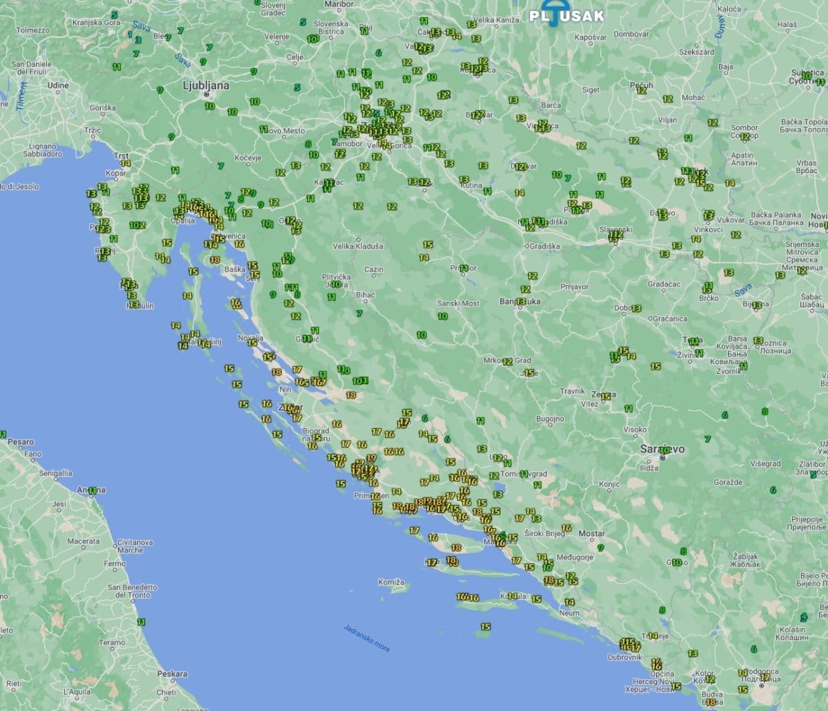 Šibenik, Hvar, Knin, Zadar, Komiža i Senj su službeno mjerili 17°C.