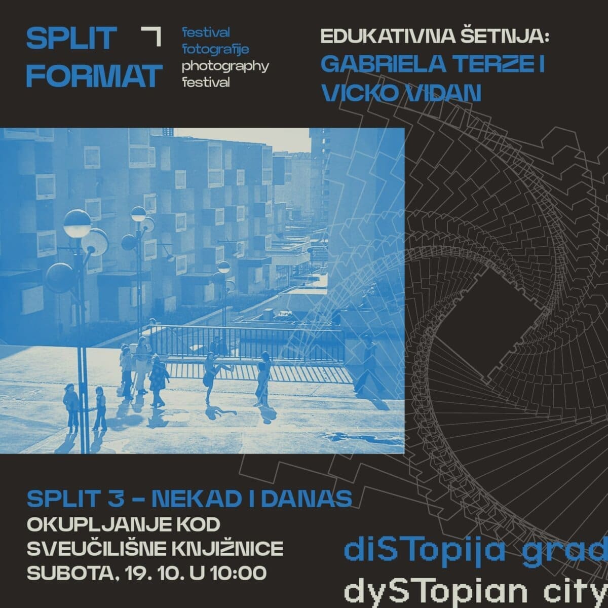 Nakon što je u ponedjeljak izložbom finalista_kinja u splitskom Fotoklubu otvoreno četvrto izdanje Split Format festivala fotografije, festival se ovaj vikend nastavlja zanimljivim programima. U subotu, 19. listopada s početkom u 10 sati ispred Sveučilišne knjižnice u Splitu krenut će se na još jednu FOTO SAFARI turu – ''Split 3: nekad i danas''. Obilazak Splita 3 vodit će turistička vodičica Gabrijela Terze koja će nas upoznati s prošlosti i sadašnjosti tog famoznog splitskog kvarta, a kako je safari zamišljen kao fotografski, svi sudionici bi trebali imati fotoaparat ili fotografirati s mobitelom. Za pitanja o fotografiji, zakonima kadra, kompozicije, svjetlosti, fotografiranja arhitekture, na raspolaganju će biti Vicko Vidan, potpredsjednik Fotokluba Split i voditelj tečaja u klubu.