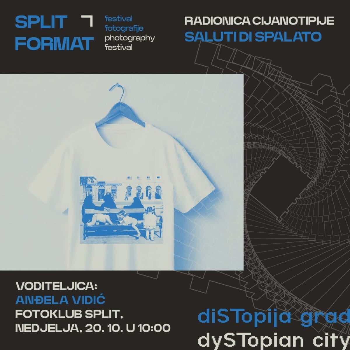U nedjelju, 20. listopada, od 10 do 12 sati održat će se radionica cijanotipije pod stručnim vodstvom fotografkinje Anđele Vidić. Starom fotografskom tehnikom cijanotipije polaznici i polaznice će izrađivati vlastite majice za uspomenu s motivima razglednica i poznatih fotografija članova Fotokluba Split.