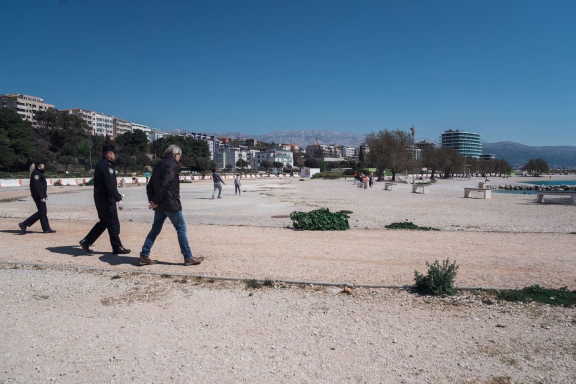 Za to vrijeme šetamo prašnjavim Žnjanom, ukupno na cijelom platou prema našoj procjeni nema više od 30-ak ljudi. Na jednoj plaži mladi par, na drugoj dvoje šetača u zrelijim godinama, pored nas u laganom trku dvojica mladića. Paralelno, ali udaljeni najmanje metar i pol. No, jeli to dovoljno mali broj osoba, jesu li na sigurnoj udaljenosti, hoćemo li svjedočiti pozivanju pojačanja kako bi se spriječilo okupljanje drugih?