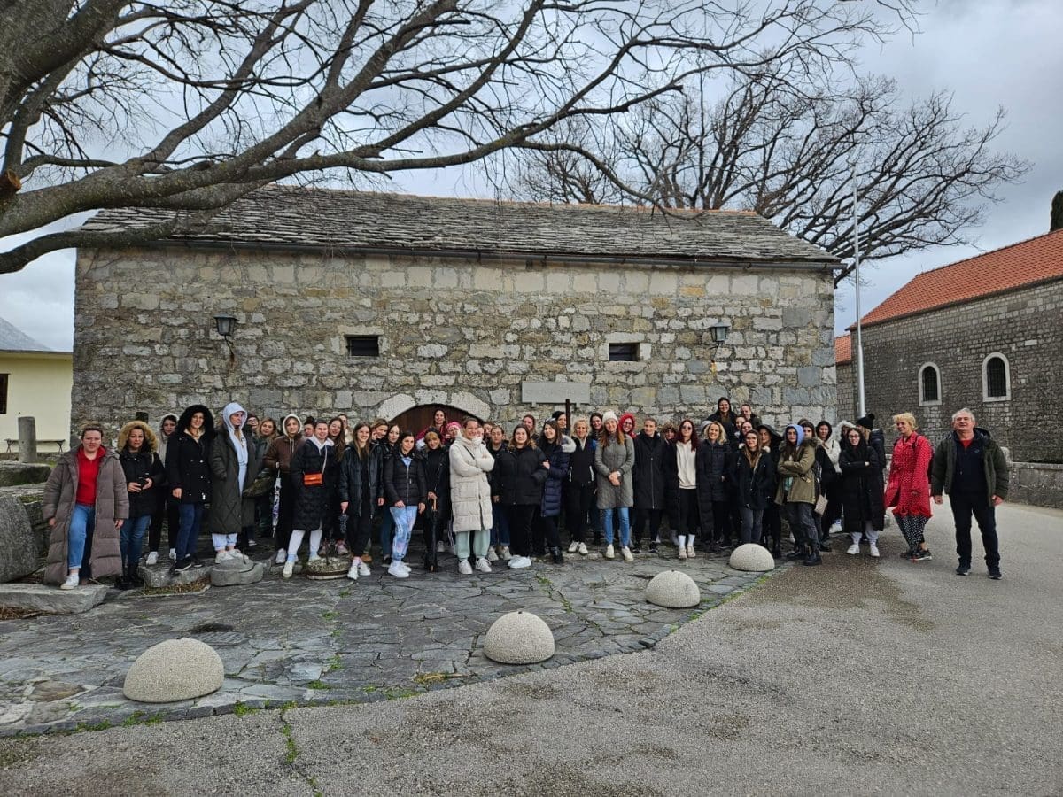 U okviru ove nastave, studentice su najprije posjetile izvor rijeke Žrnovnice, gdje im je Tomislav Nikolić održao kraće predavanje o važnosti voda, te o biljnom i životinjskom svijetu na i u okolici izvora. Terenska nastava je nastavljena posjetom crkvi Sv. Jure na Gracu, te crkvi Sv. Ciprijana u Gatima. Studenticama je u Gatima o povijesti Poljičke republike, poljičkom statutu, popima glagoljašima, kulturnom značaju sakralnih objekata i drugim osobitostima Poljičkoga kraja, također, govorio voditelj cjelokupnog programa, Tomislav Nikolić.