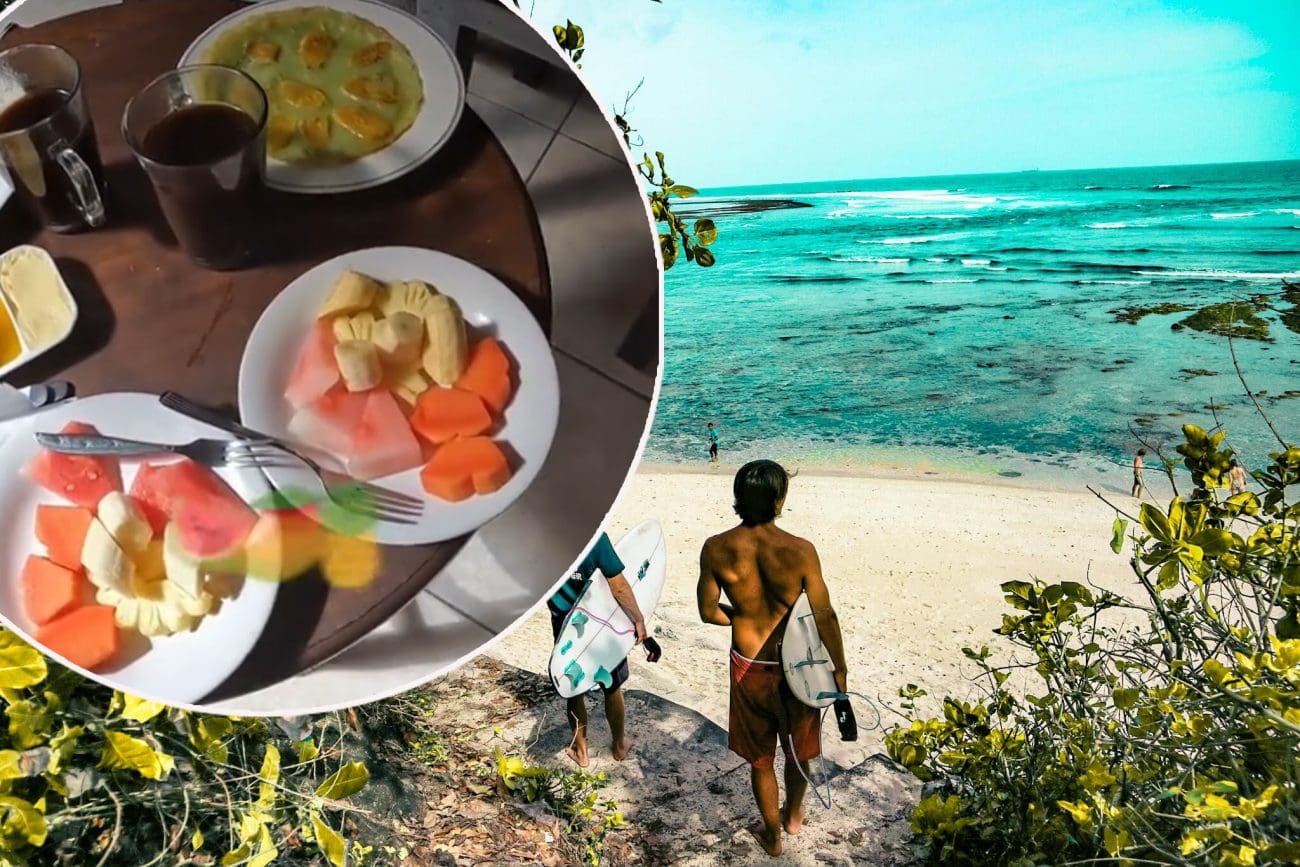 "Još jedan smještaj, ovoga puta vrhunski. Za 6,5 eura po noći, znači nešto više od 3 eura po osobi. Terasa, krevet, imamo besplatnu vodu (na Baliju se ne pije voda iz pipe), kuhinja, kupaonica i doručak uključen u cijenu! Vrh!“, komentirao je Toma pokazujući na snimci što sve uključuje ovaj vrlo pristupačan smještaj.