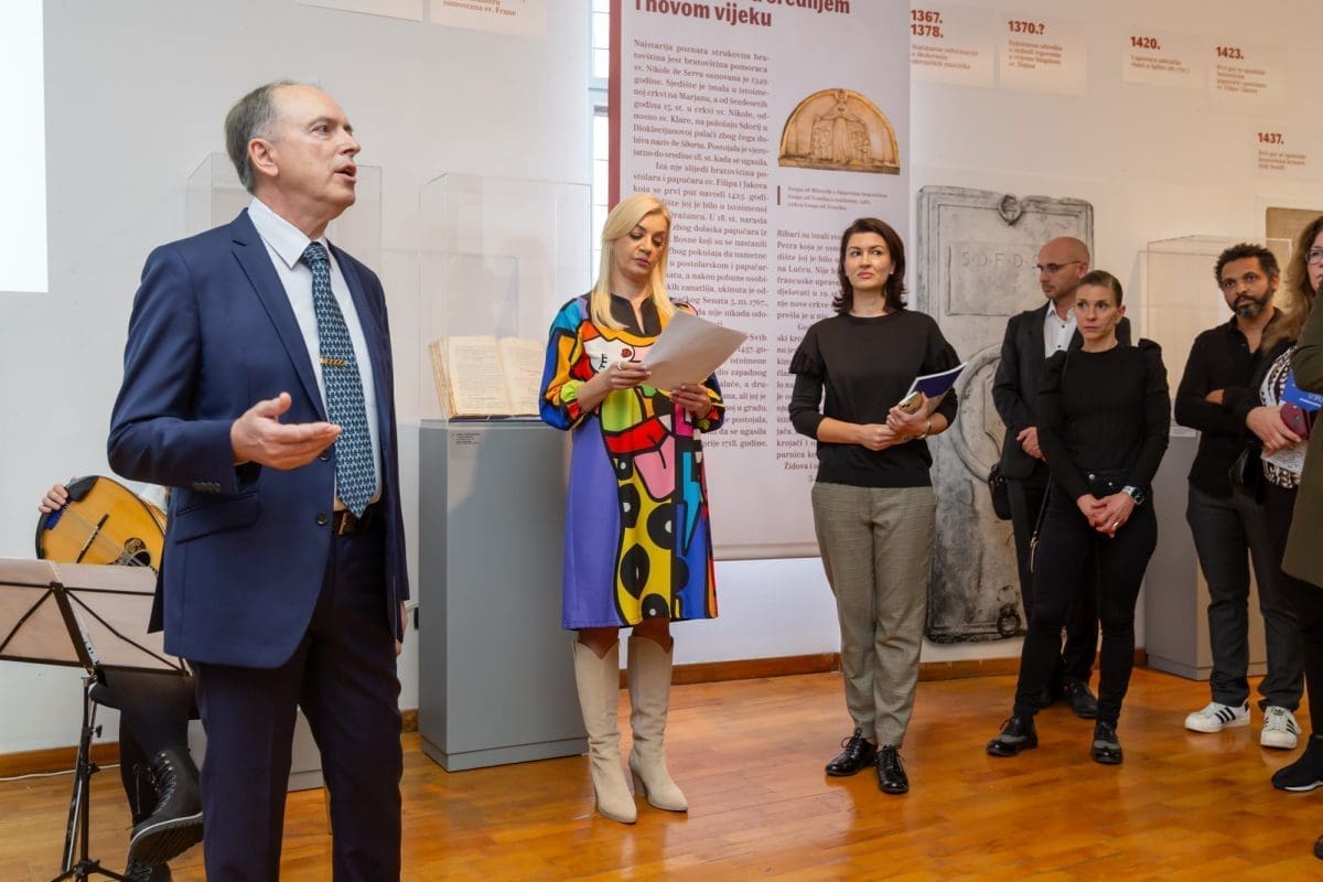 Umjesto ravnatelja Arheološkog muzeja koji je izostao zbog bolesti, okupljenima se obratio Arsen Duplančić, ujedno i urednik izložbenog kataloga.