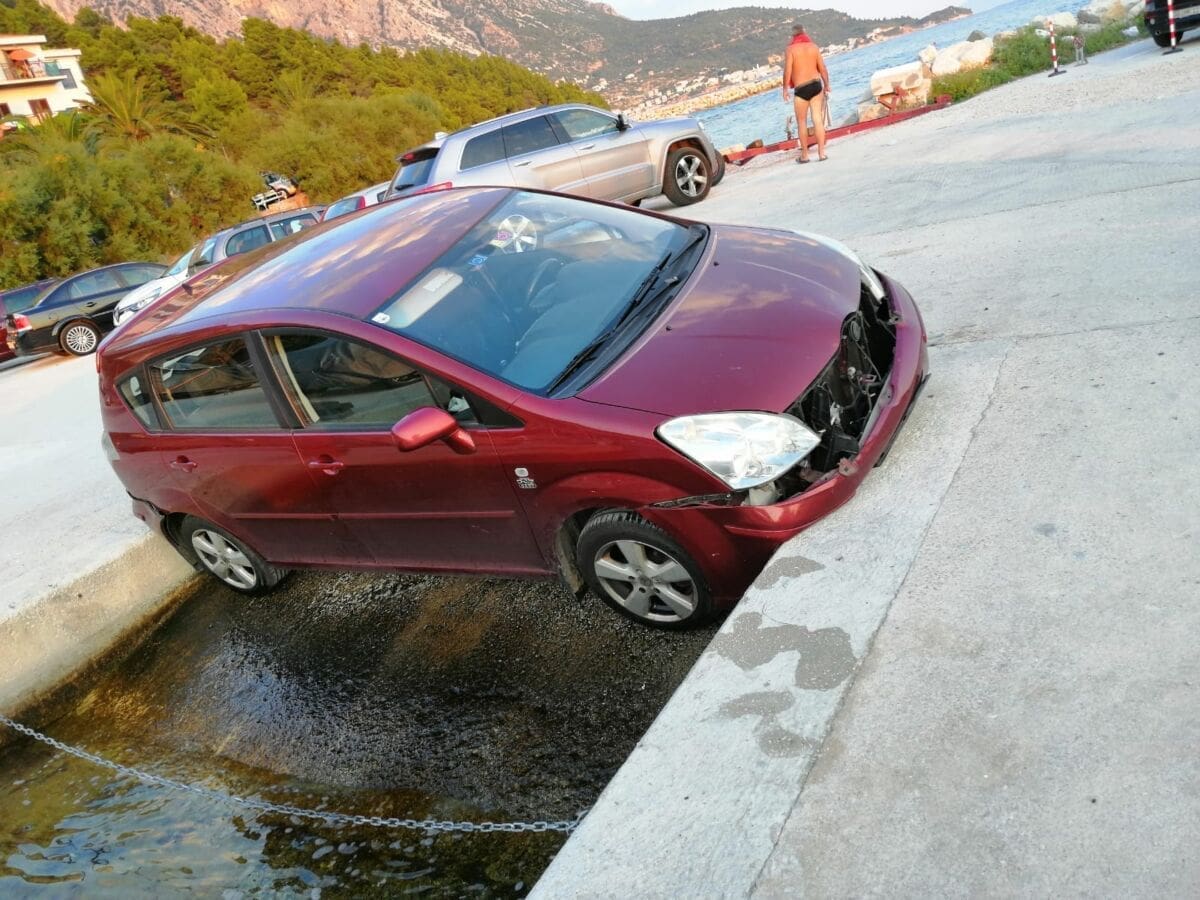 Nesreća bez težih posljednica dogodila se u četvrtak poslijepodne u Podgori. Kako nam je dojavio čitatelj, vozač Toyote austrijskih tablica neoprezno je vozio obalom, kada je upao u rampu za brodove.