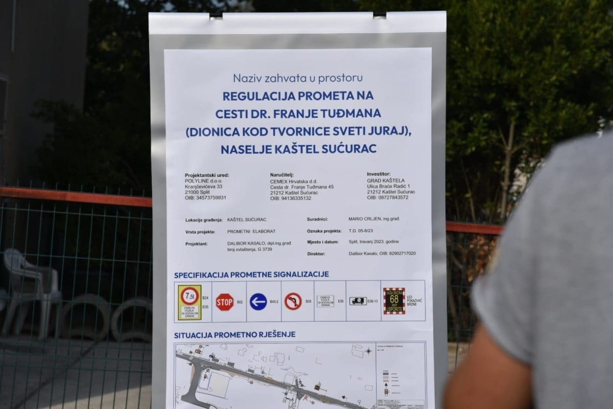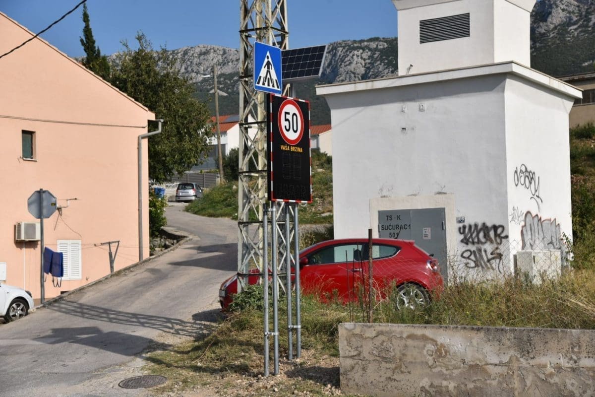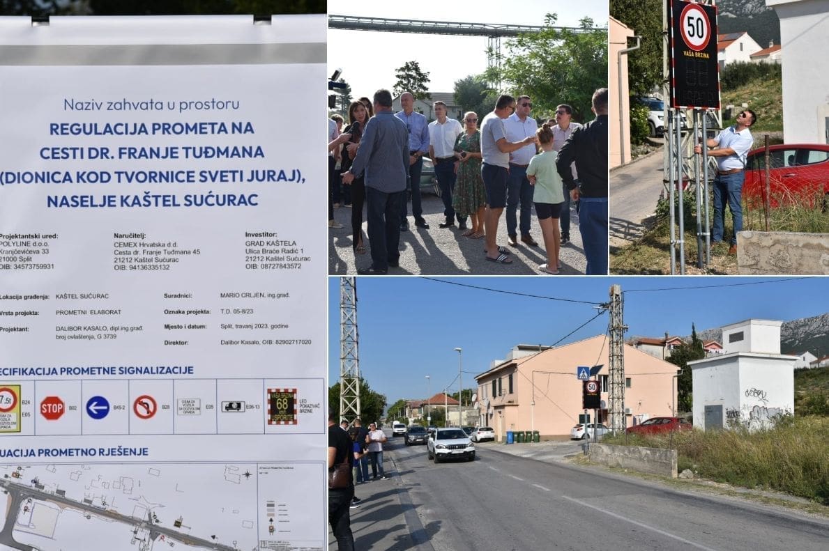 Novom regulacijom prometa obuhvaćeno je postavljanje pokazivača brzine s radarskim mjerenjem u LED izvedbi te dodatno označavanje dionice ulice Cesta dr. Franje Tuđmana kojima će se jasno označiti zabrana prometovanja za vozila čija ukupna masa prelazi 7,5 tona. Ukupna vrijednost projekta je 5.350 eura, a financirali su ga zajednički Cemex i Grad Kaštela.
