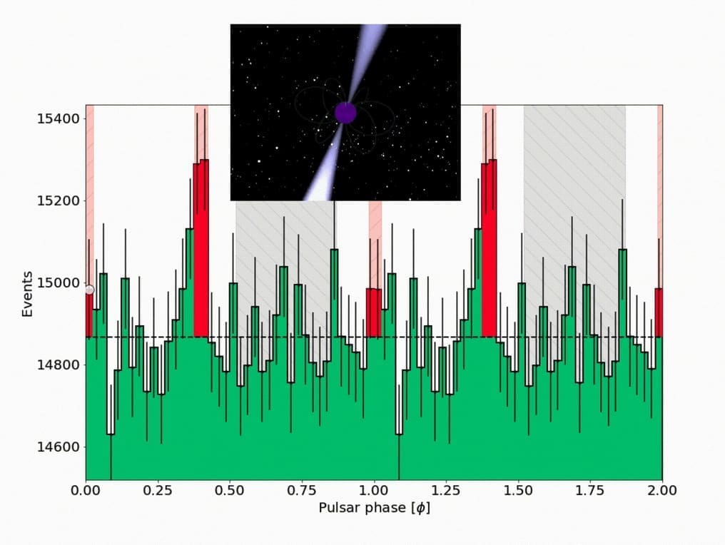 Pulsari su neutronske zvijezde koje se vrlo brzo rotiraju i tako stvaraju ogromna magnetska polja te emitiraju elektromagnetsko zračenje u formi dva snopa, koji se mogu opaziti samo kad snopovi prolaze preko Zemlje pri rotaciji pulsara. Prilikom opažanja svakoj detektiranoj gama zraci se precizno zabilježi vrijeme detekcije što omogućuje da se detaljnom analizom snimljenih gama zraka izdvoje one game zrake koje dolaze iz pulsara kad su snopovi usmjereni prema Zemlji, iako je njihov broj znatno manji u odnosu na stalnu emisiju gama zraka iz okolne maglice.