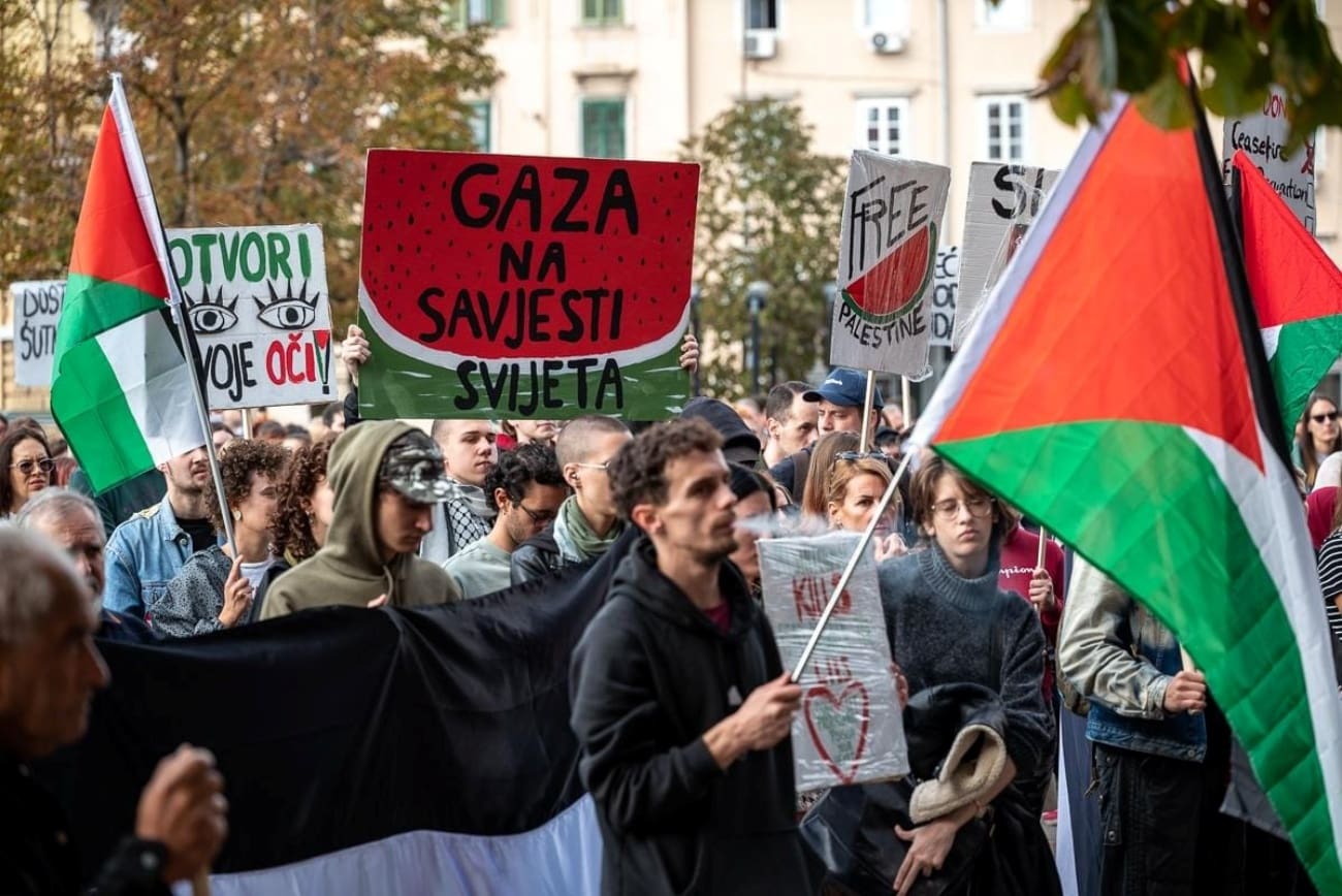 Tražimo i odbijanje suradnje svih kulturnih radnika, umjetnica i tehničkog osoblja s programima povezanim s izraelskim državnim institucijama. Zahtijevamo i javnu odgovornost i smjenu kolaboracionističke uprave Dubravke Vrgoč i Leonarda Jakovine, čije djelovanje koristi umjetnost kao sredstvo političkog pranja. Zaključno, tražimo transparentnost svih međunarodnih suradnji i financijskih izvora HNK Rijeka”, navodi se u priopćenju organizatora prosvjeda.