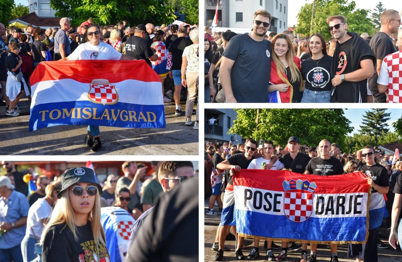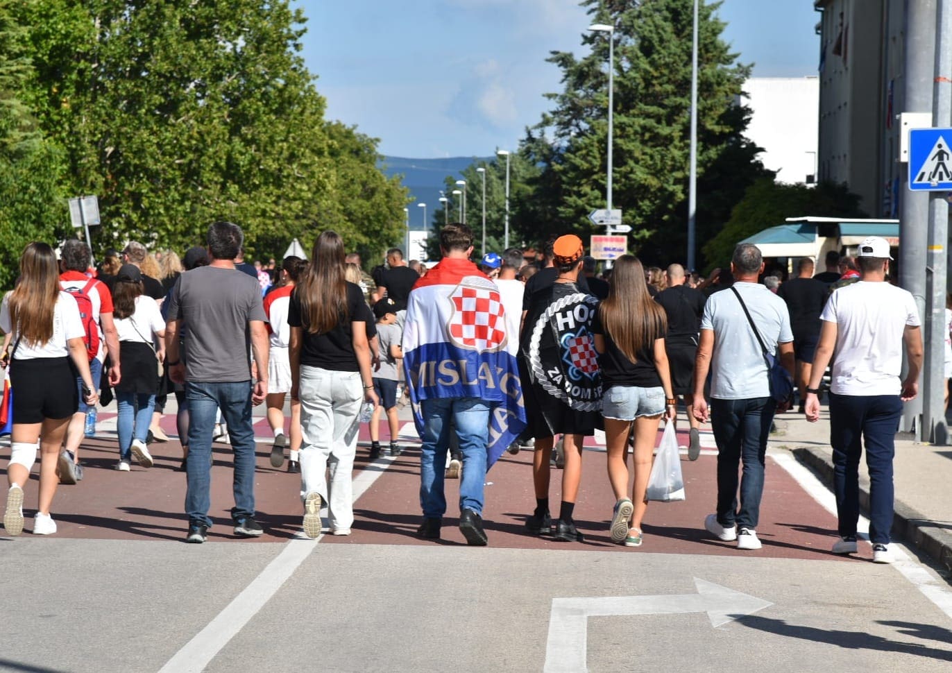 Na svim ulazima prema prostoru koncerta stvaraju se ogromne gužve, a posjetitelji strpljivo čekaju kako bi zauzeli svoja mjesta. Uz pjesmu, zastave i domoljubna obilježja, atmosfera je uzavrela, no raspoloženje je i dalje pozitivno i uzbuđeno.