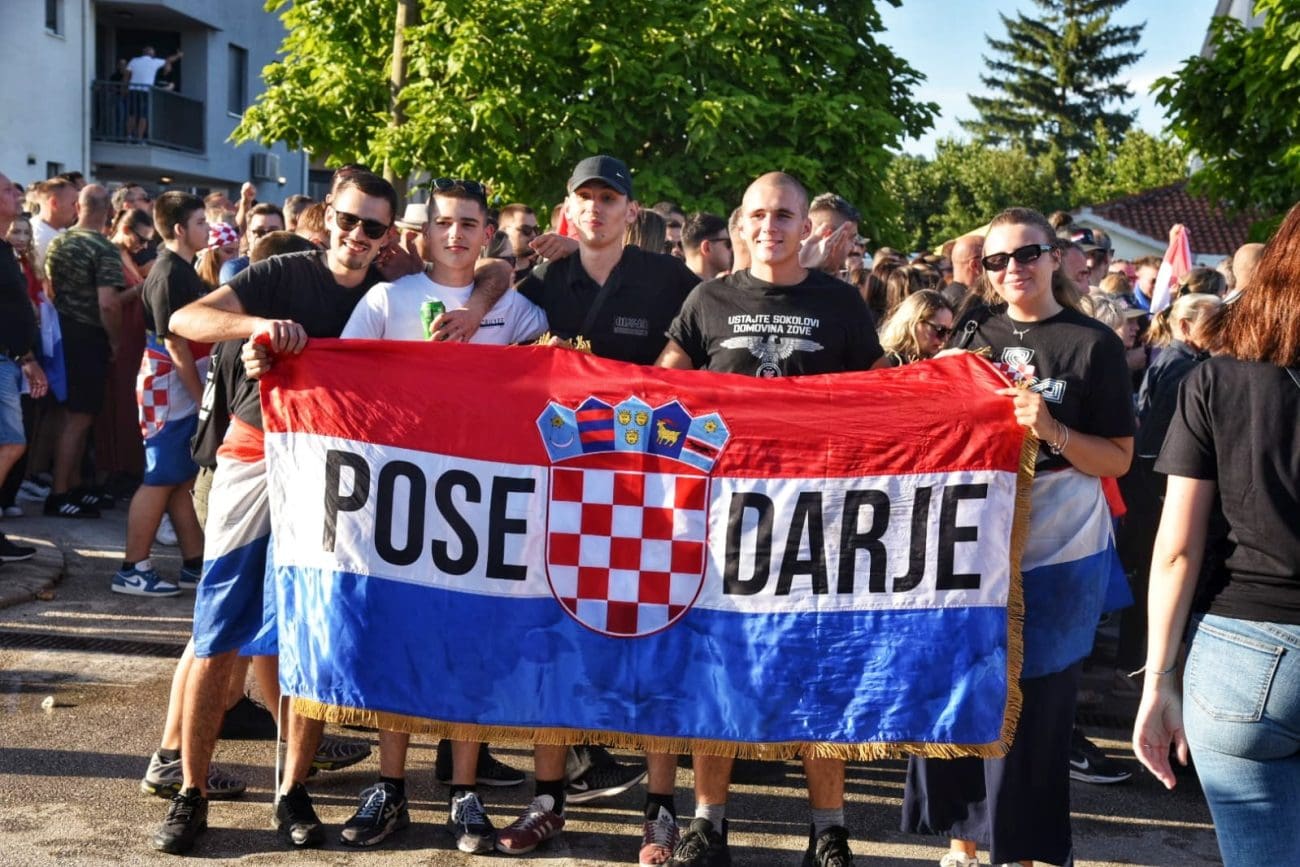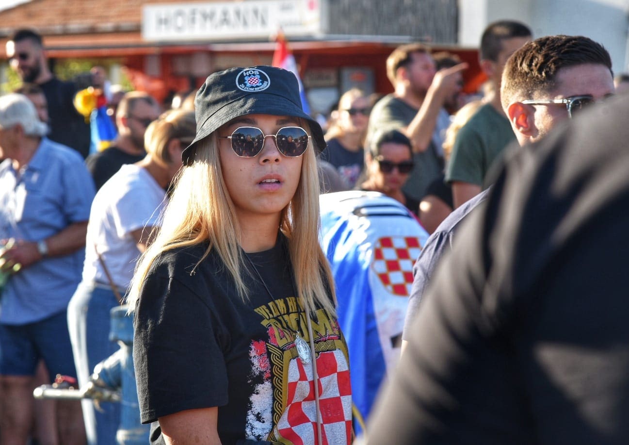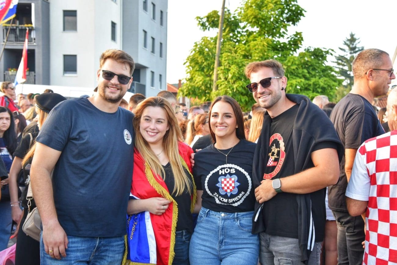 Vrijedi napomenuti da dominiraju brojne hrvatske zastave, a brojni su se obukli u obilježja HOS i crne majice.