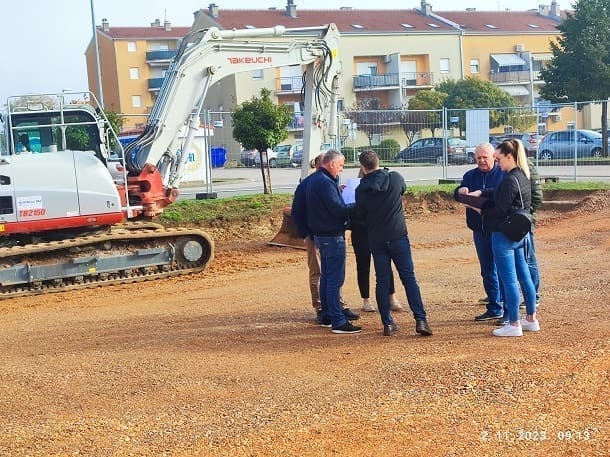 Sinjski gradonačlenik Miro Bulj i njegov zamjenik Denis Bobeta jutros su posjetili novootvoreno gradilište na Trgu Gojka Šuška u Sinju na lokaciji uz sportsku dvoranu Ivica Glavan – Ićo u Sinju.