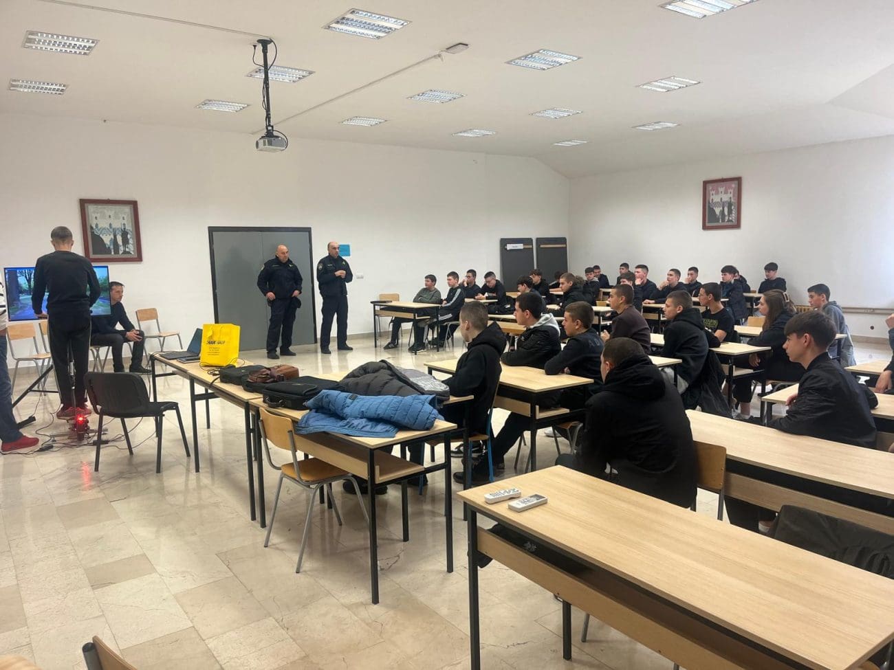 Predstavnici MUP-a, policijski savjetnik Perica Orešković (PU SD) i pomoćnik načelnika za sigurnost prometa Duško Ugrin (PP Sinj), upoznali su učenike s: obveznim korištenjem zaštitne opreme (kacige), opasnostima korištenja slušalica tijekom vožnje te rizicima kretanja brzinama većim od dopuštenih na pješačkim površinama.