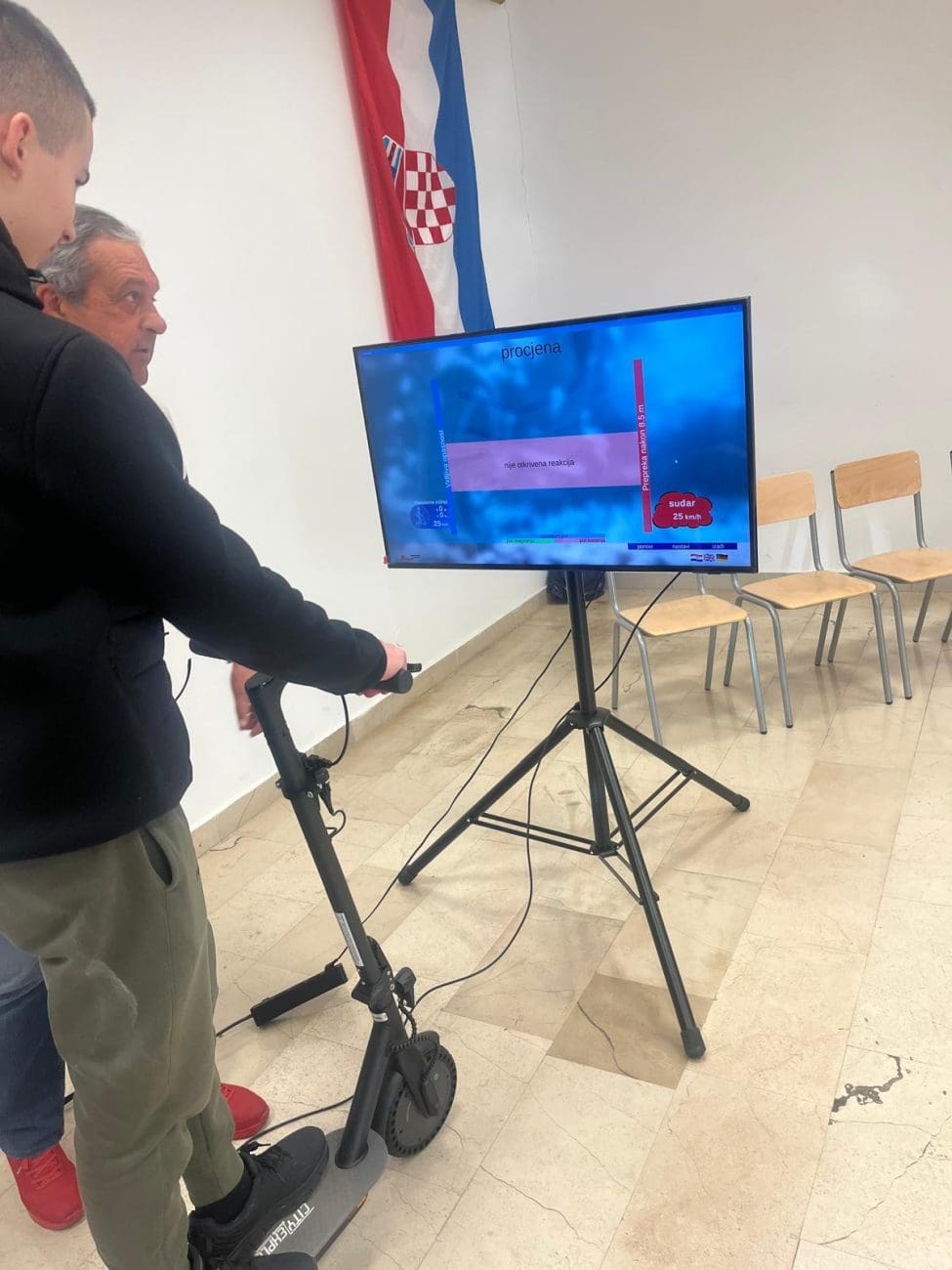 Gosp. Ivica Mušura (predavač na poligonu HAK-a) predstavio je ispravno korištenje romobila te demonstrirao rad simulatora za vožnju namijenjenog edukaciji u učionici.