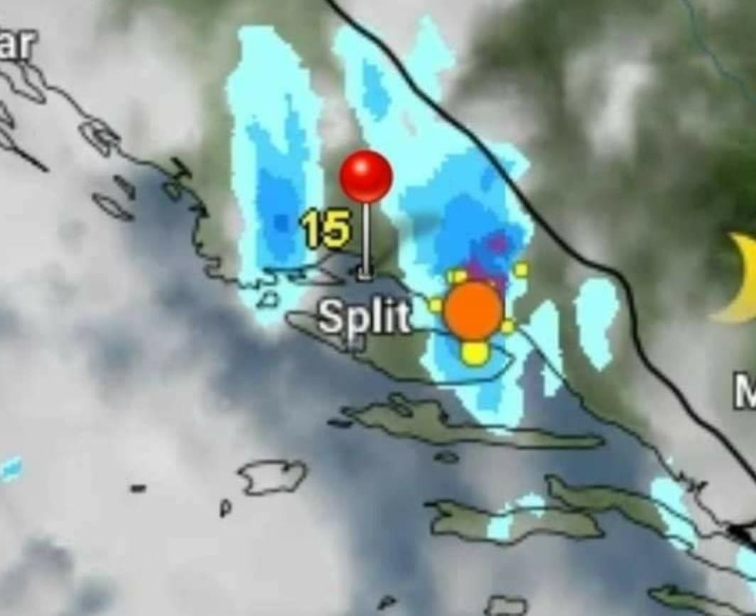 Situaciju zorno prikazuje satelitska snimka naoblake i simulacija radara na kojoj se vidi da se Split našao u uskom polju vedrine, između dva prilično kišna oblačna sustava. Sveti Duje očito je imao prste u svemu...