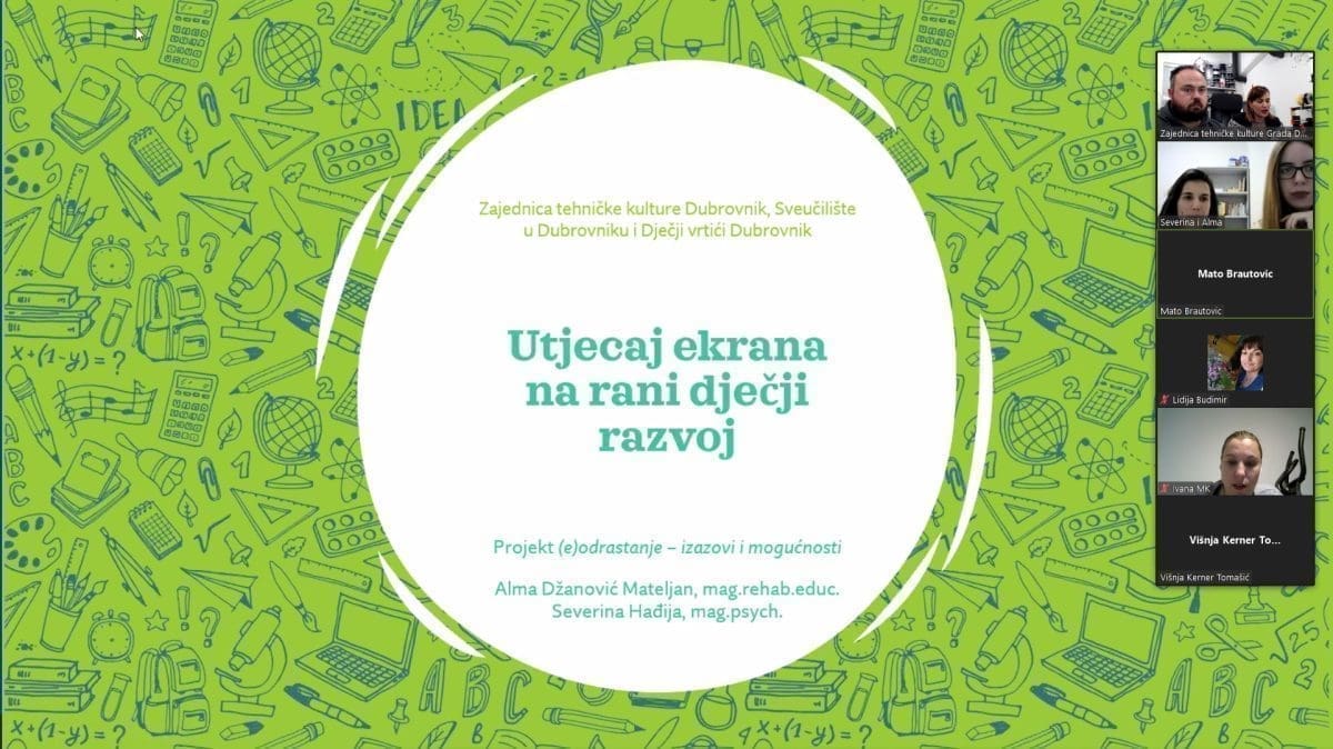 Zajednica tehničke kulture Grada Dubrovnika u suradnji sa Sveučilištem u Dubrovniku i Dječjim vrtićima Dubrovnik je održala završnu online konferenciju o rezultatima projekta (e)odrastanje - izazovi i mogućnost.