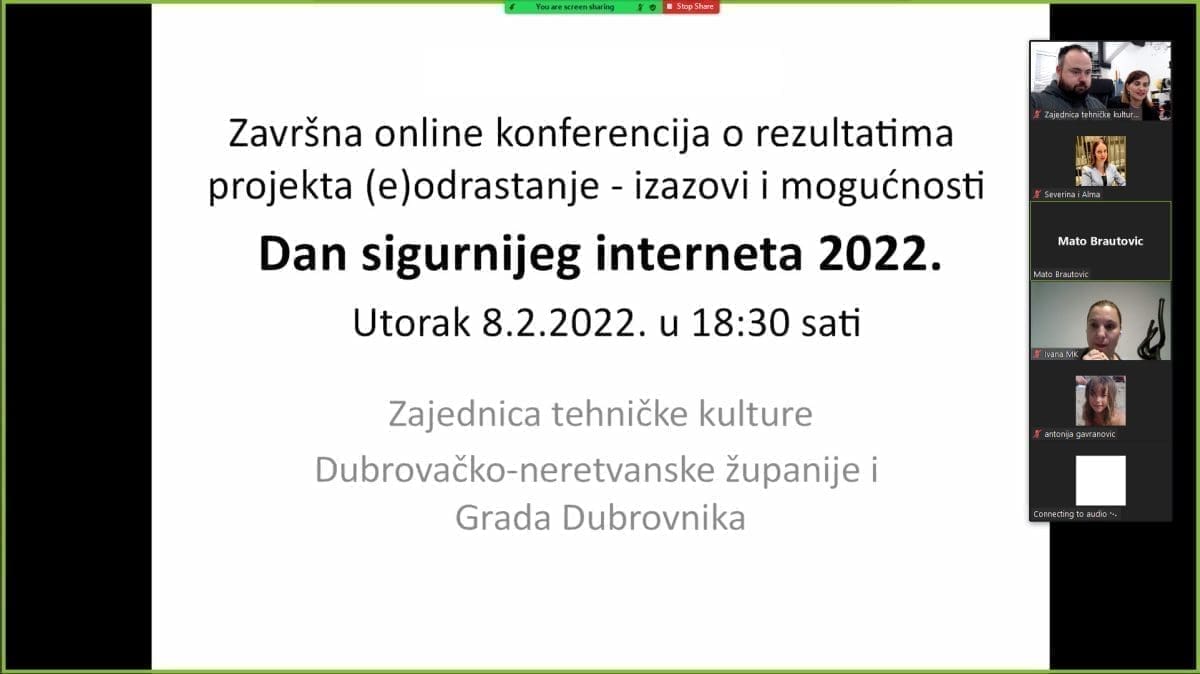 Završna online konferencija se održala u sklopu projekta (e)odrastanje - izazovi i mogućnosti, kojeg provodi Zajednica tehničke kulture Grada Dubrovnika u partnerstvu sa Sveučilištem u Dubrovniku i Dječjim vrtićima Dubrovnik.