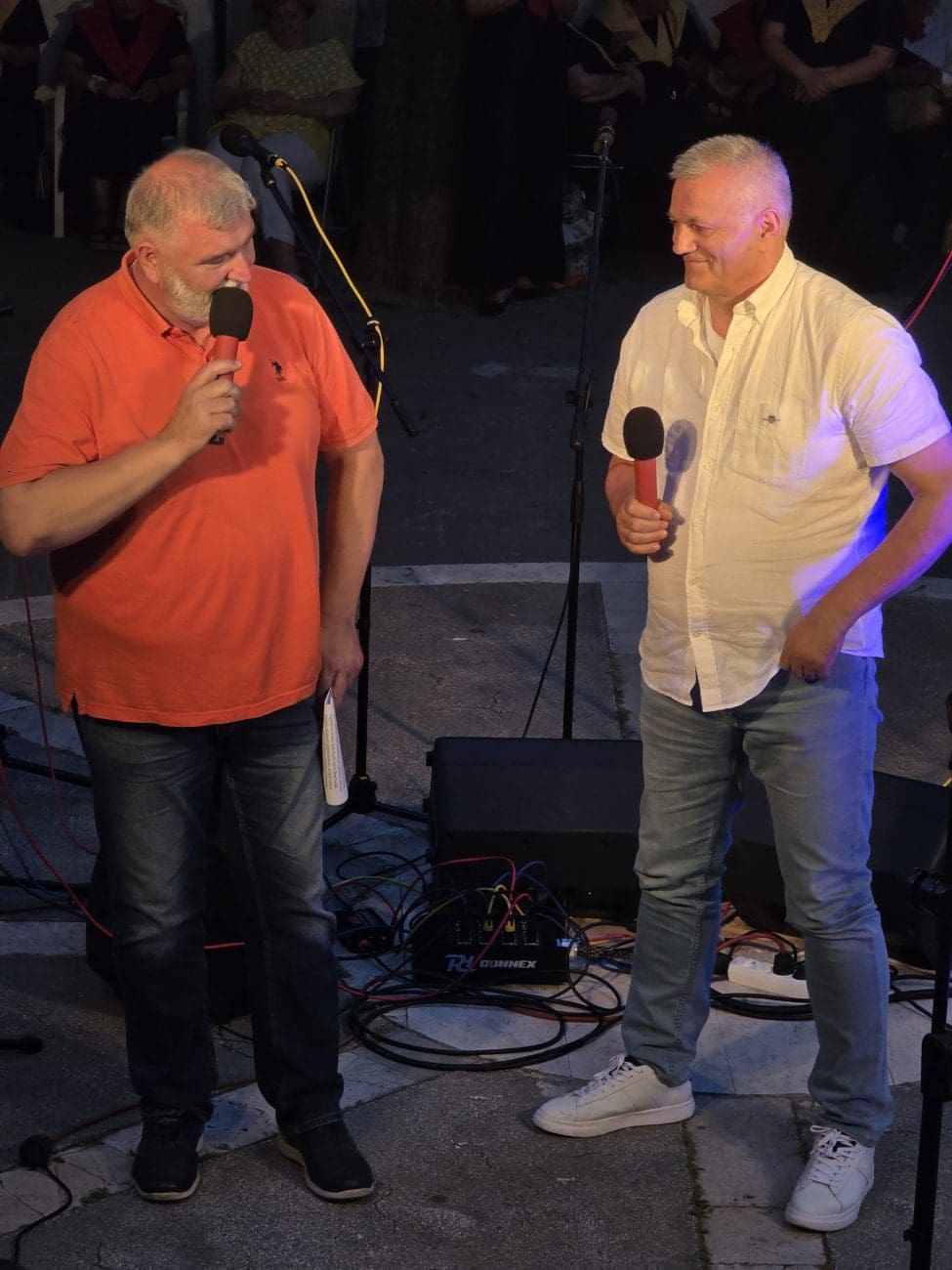 Uz vođenje uigranog voditeljskog para – šarmantne Anamarije Alebić i iskusnog novinarskog barda Vedrana Očašića, čiji bariton rado slušamo na valovima Radio Splita, a osobito na Poljudu kad Marko Livaja, a ponekad i još netko od igrača Hajduka, ubaci balun u protivničku mrežu – brzo su prošle dvi ure u kojima su se osjećali motiviranost, solidarnost i sebedarje svih sudionika, u kojima su mladi i stari bili podjednako zadovoljni. Tako je i naš novi poteštat Tomislav Šuta našao malo vrimena da navrati.