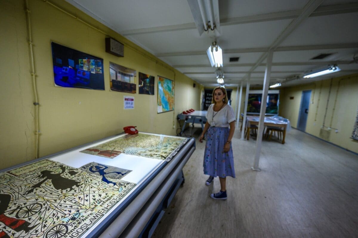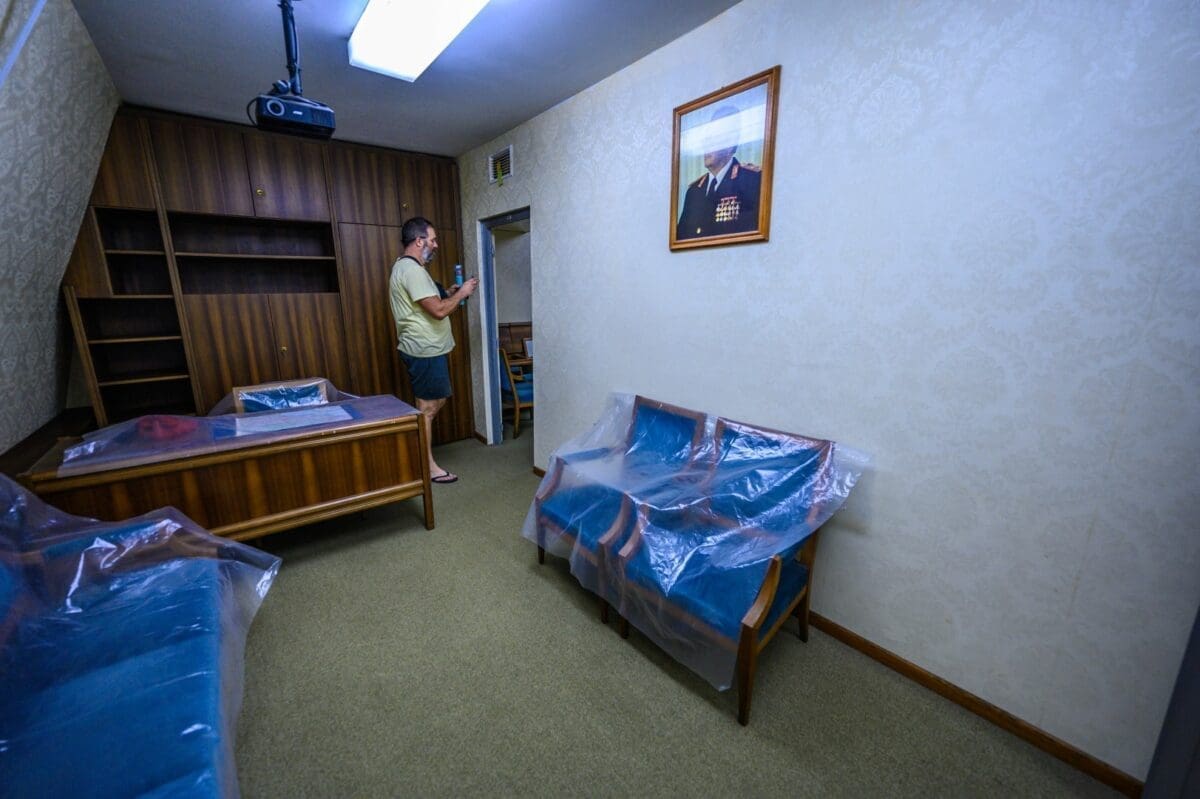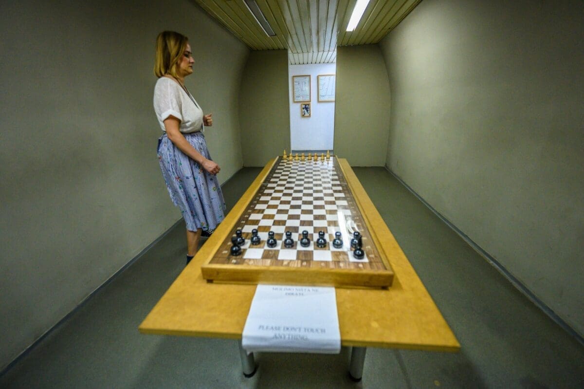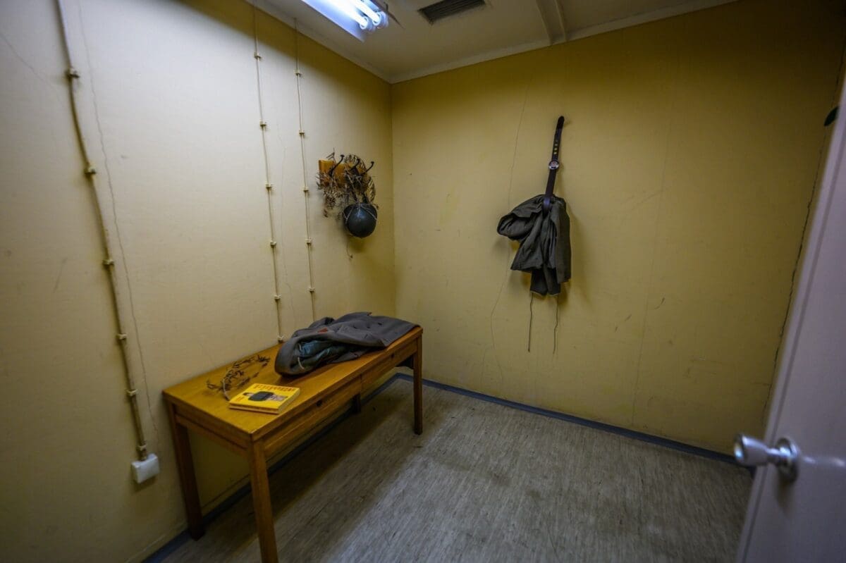 Sada smo u komandnoj sobi. Stolovi su originalni, i tu su se crtale mape i pravili strateški planovi.