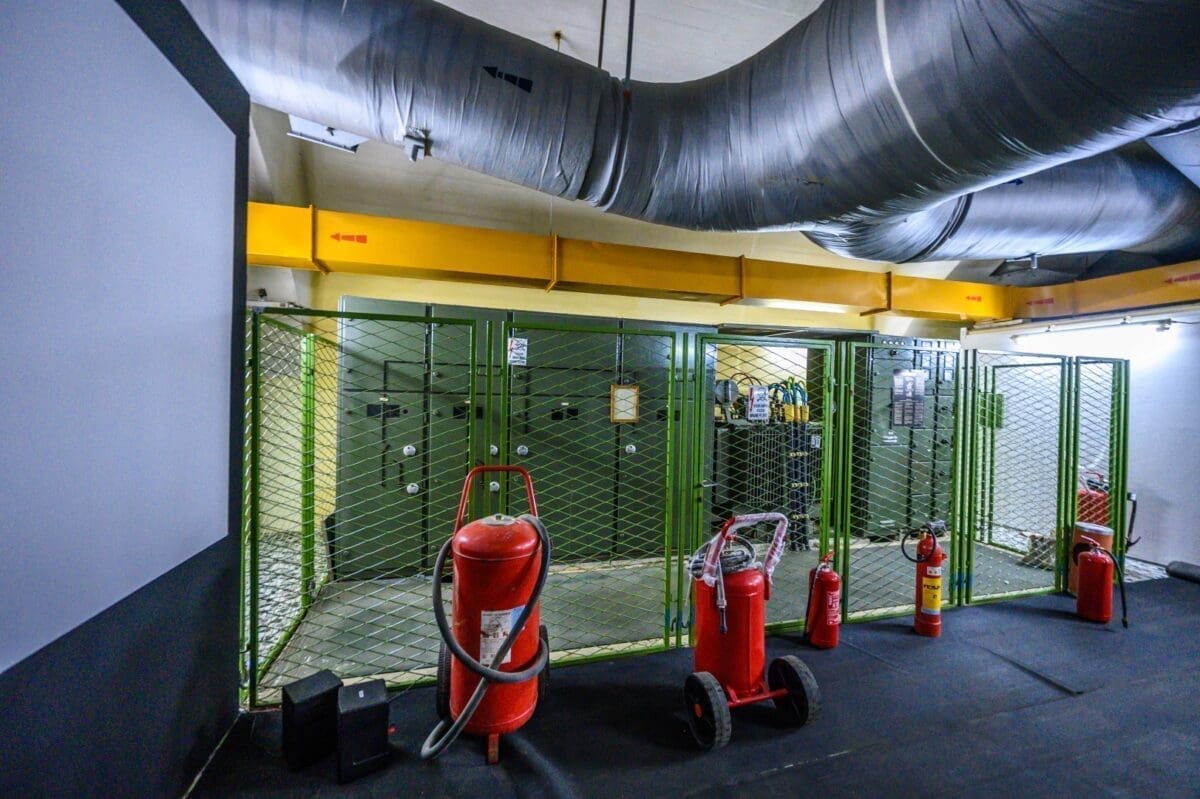 Ovo su povezane boce halona, te bi u slučaju požara on bio ugašen u otprilike 10 sekundi. Nekoliko je opcija dovoda vode i struje. Prva opcija je bila povezanost na gradsku mrežu, no bunker je imao i vlastiti bunar (no ta voda više nije pitka). Voda bi bila ispumpana iz same Neretve za 350 ljudi.