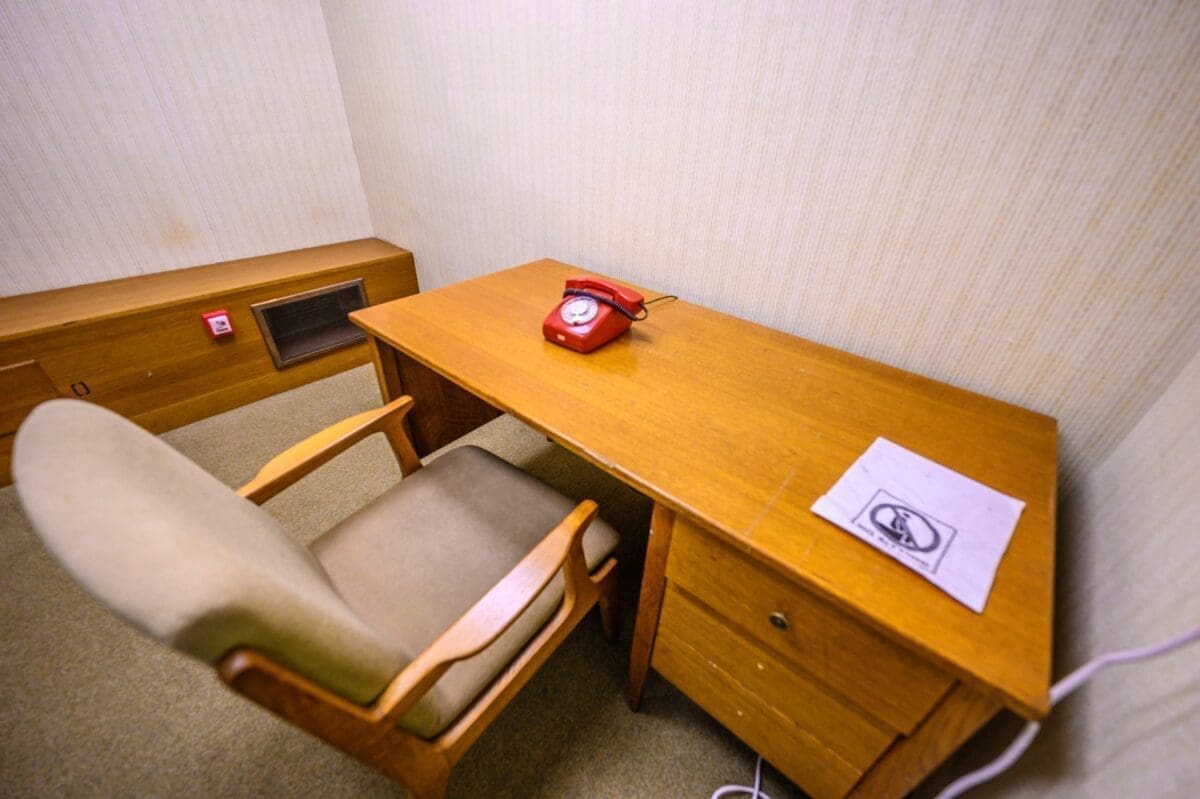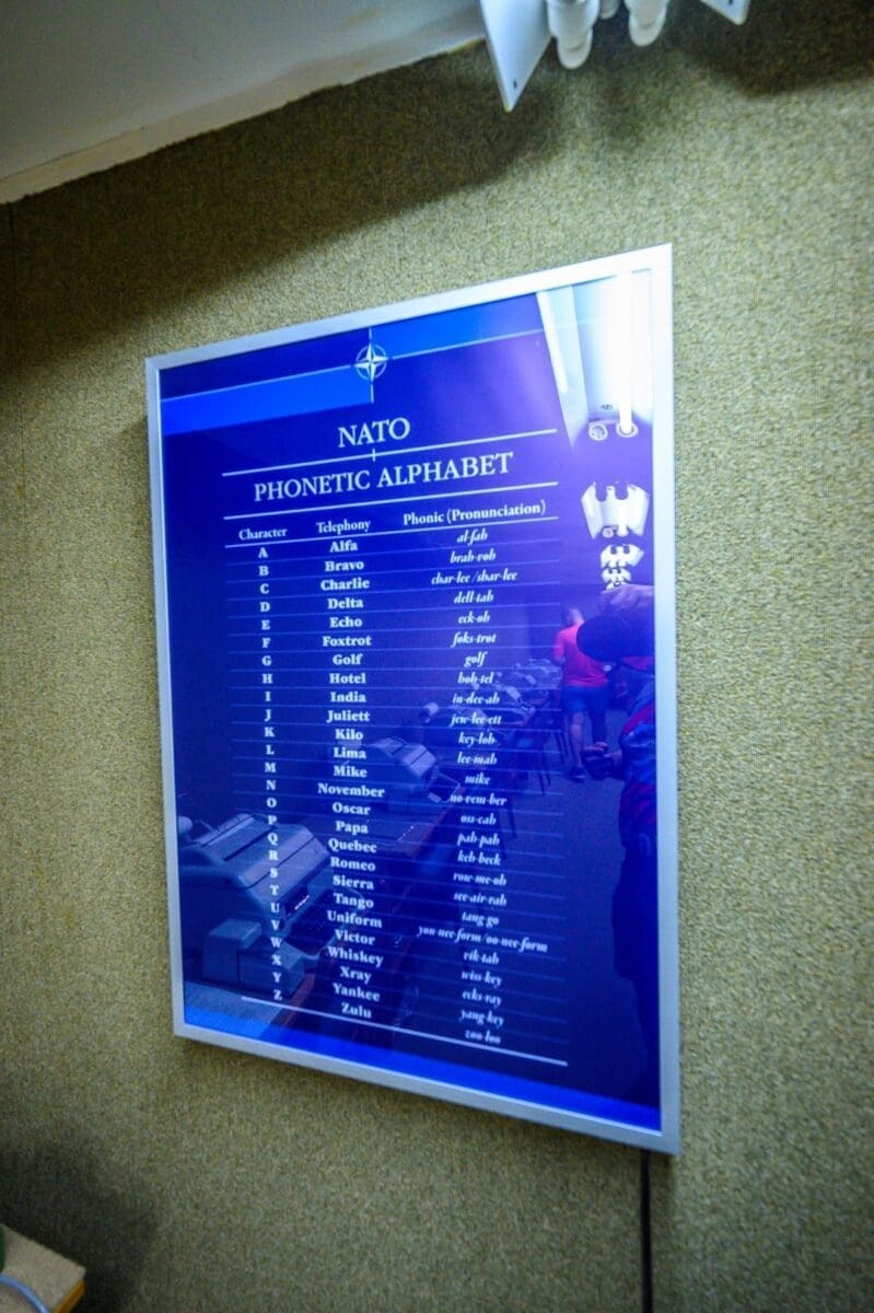 Ovo je telefonska centrala, soba za uspostavljanje telefonskih poziva. Ti telefonski pozivi su morali biti kodirani, te je iza vas mapa s kodovima i osobe bi morale znati taj kod. Potom bi bio biran telefonski broj na telefonu.