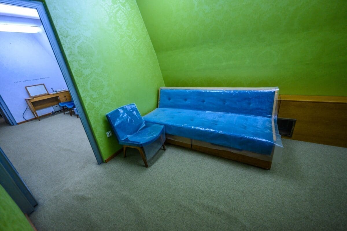 Ovo bi bila soba za kabelske centre kako bi mogli gledati televiziju unutar samog objekta, jer su iz ove sobe postojali kabeli povezani sa svim sobama unutar bunkera.