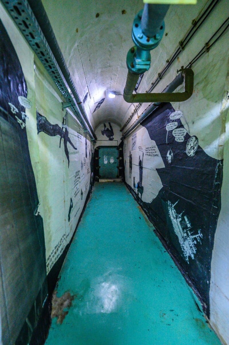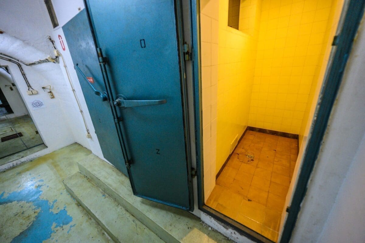 Bunker se sastoji od 12 međusobno povezanih blokova. Mi smo sada ušli u bunker broj 0, što je blok za dekontaminaciju. Upravo je ovaj ulaz kroz koji smo ušli bio glavni ulaz u slučaju nuklearnog udara, kroz koji su Tito i 350 osoba iz najvišeg vrha Jugoslavije (što bi uključivalo i medicinsko osoblje, generale, najviši vrh...) morali proći, biti dekontaminirani pod tuševima u ovim prostorijama, nakon čega bi uslijedio put dalje.