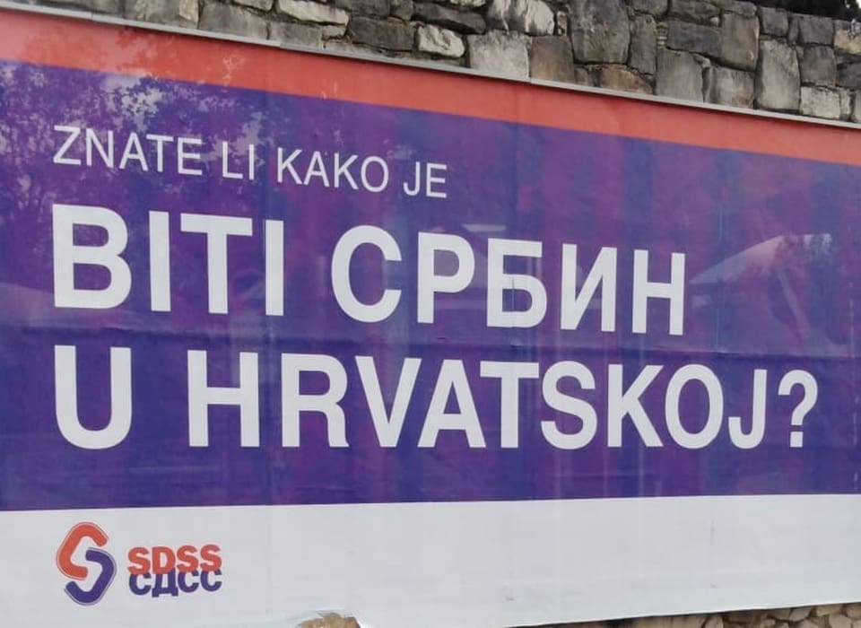 Prije nekoliko dana u Spinutu je osvanuo jumbo plakat "Znate li kako je biti Srbin u Hrvatskoj?". Radi se o predizbornoj kampanji SDSS-a za nadolazeće izbore za EU parlament.